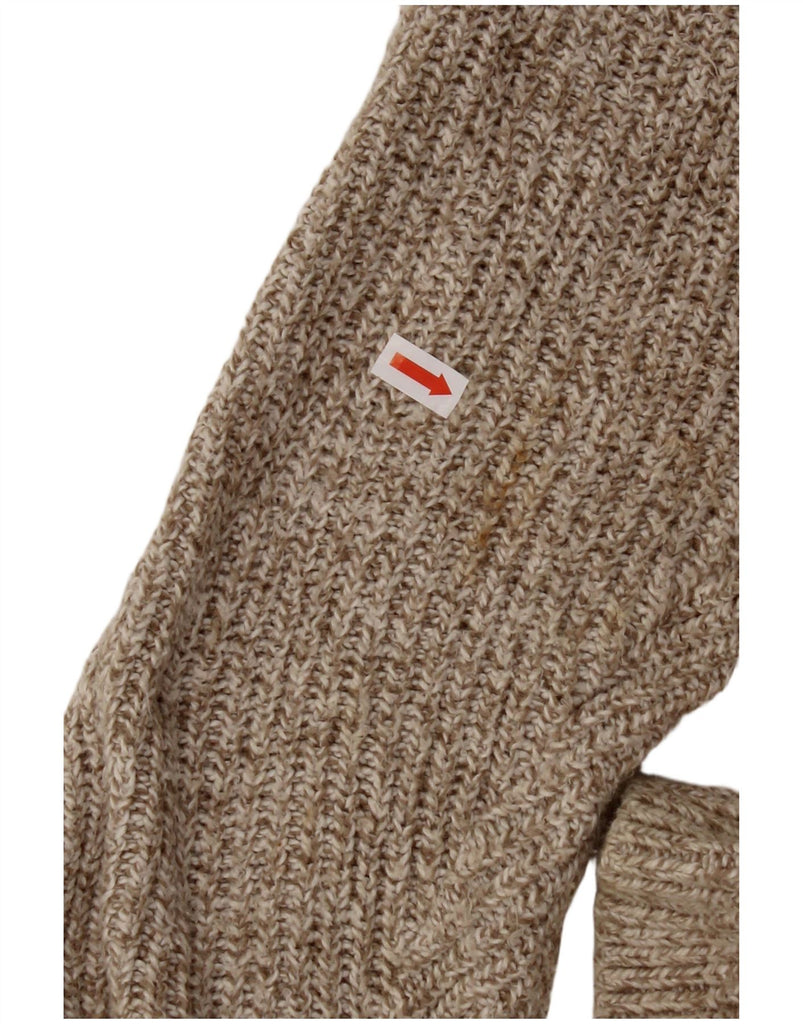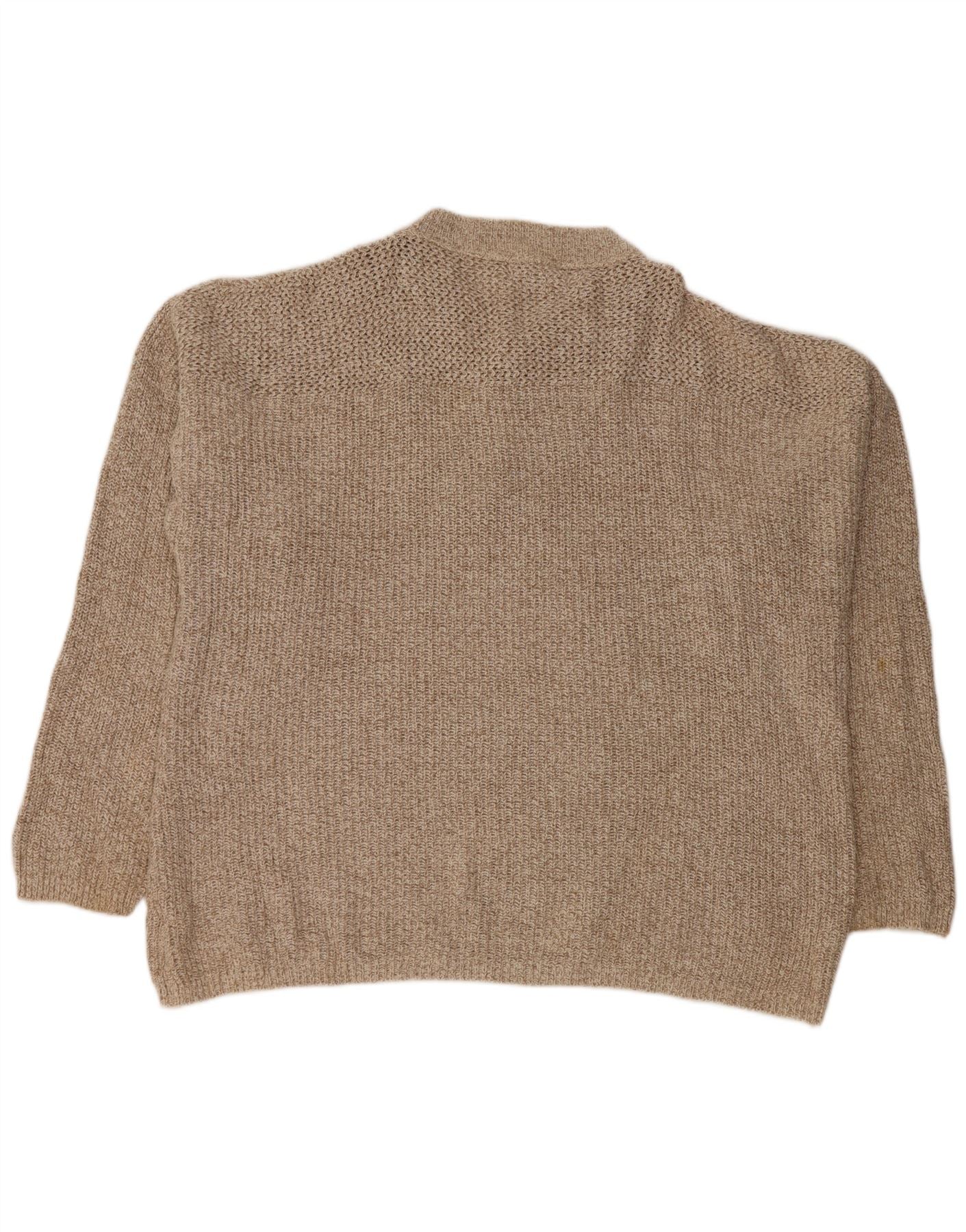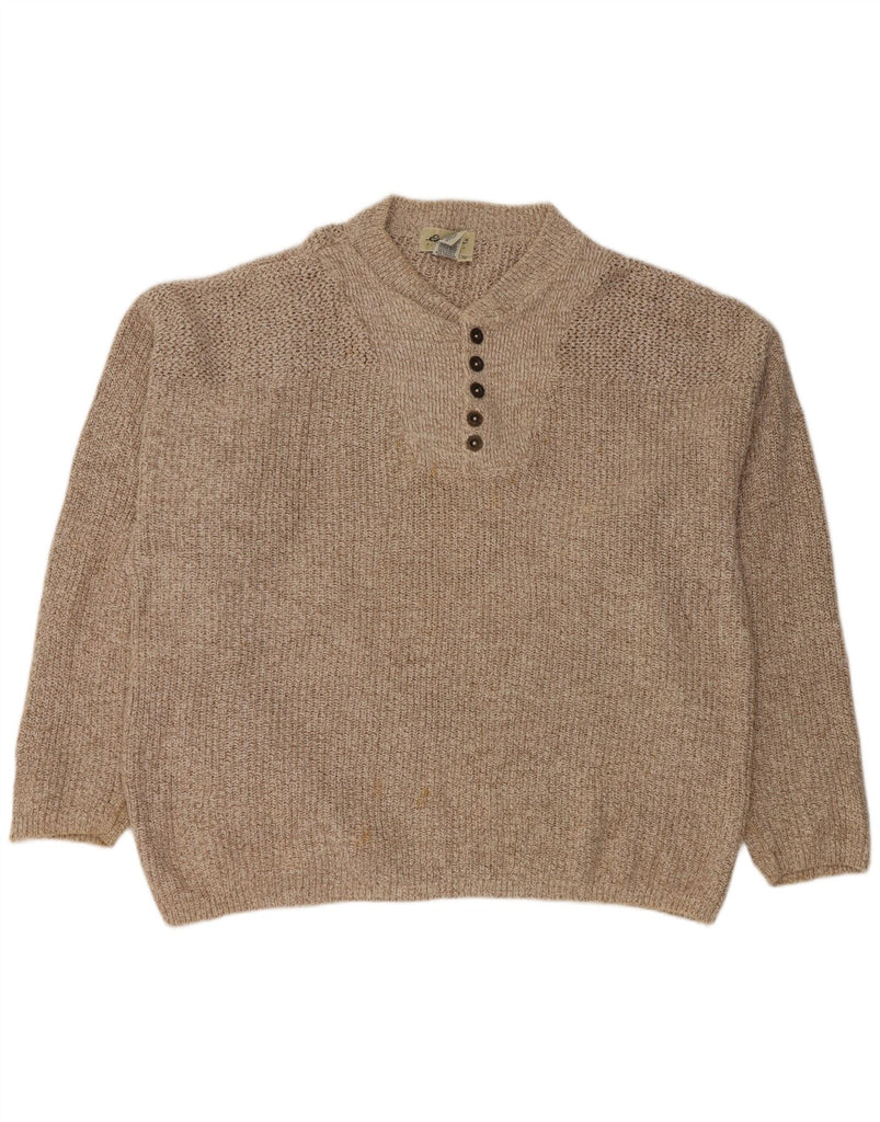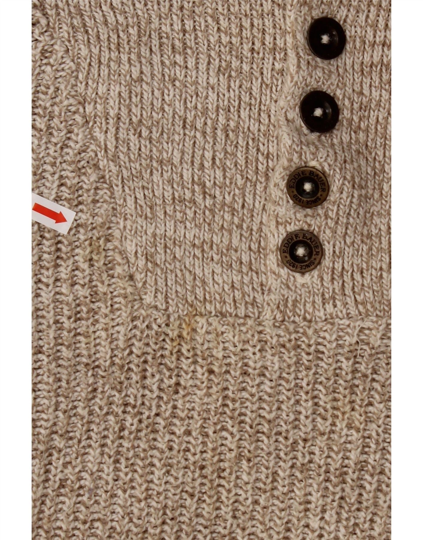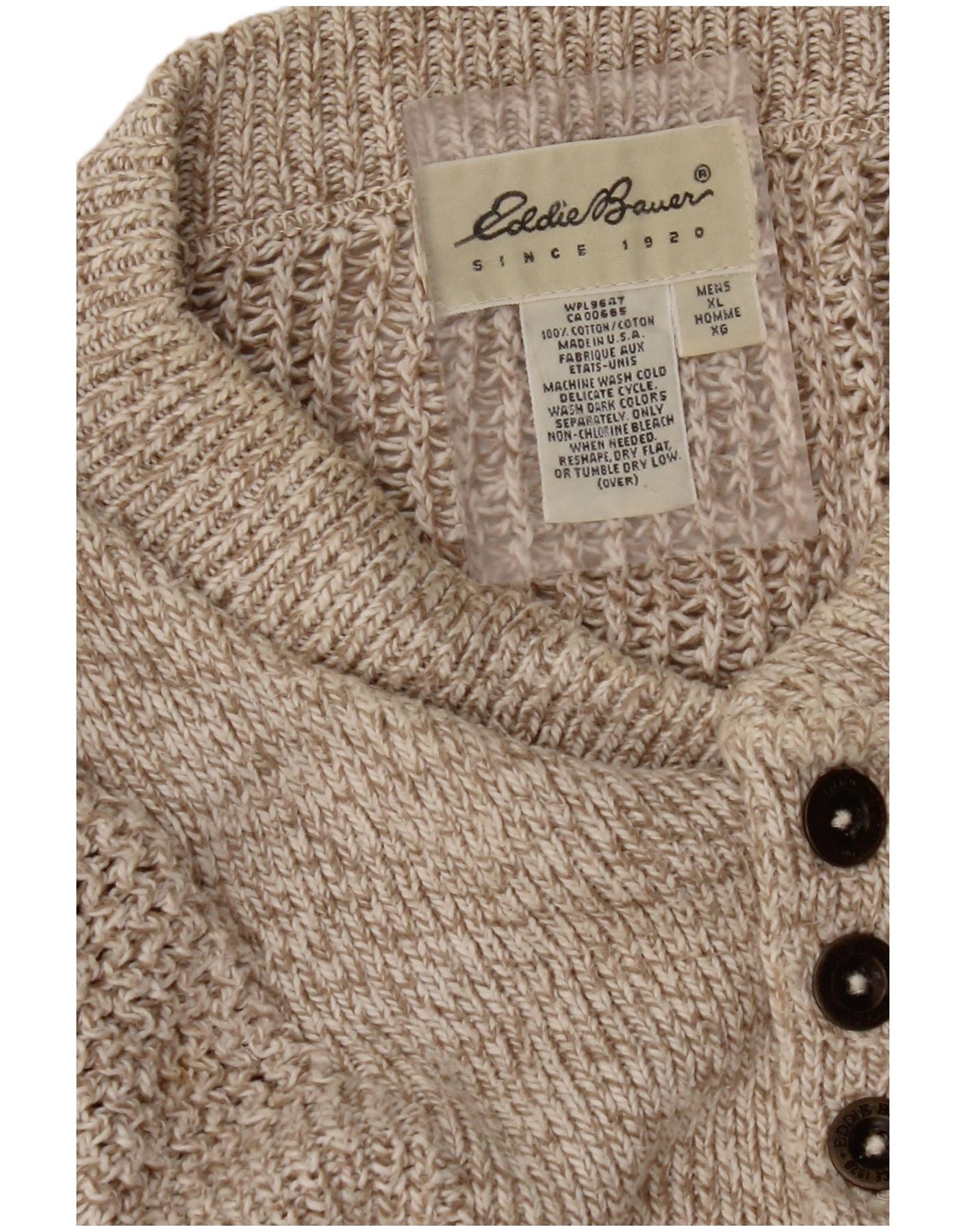 EDDIE BAUER Mens Oversized Button Neck Jumper Sweater XL Beige Flecked
