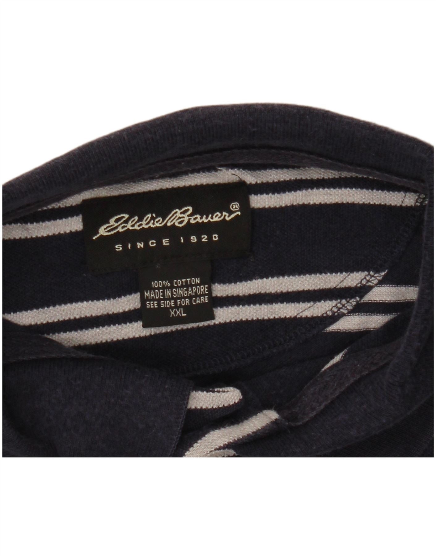 Eddie Bauer Mens Polo Shirt 2XL Navy Blue Striped Cotton
