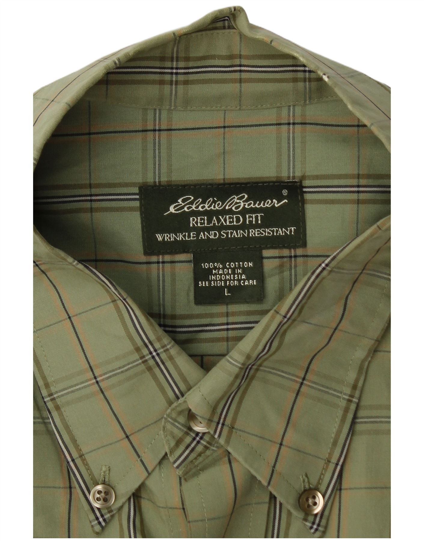 EDDIE BAUER Mens Relaxed Fit Shirt Large Green Check Cotton