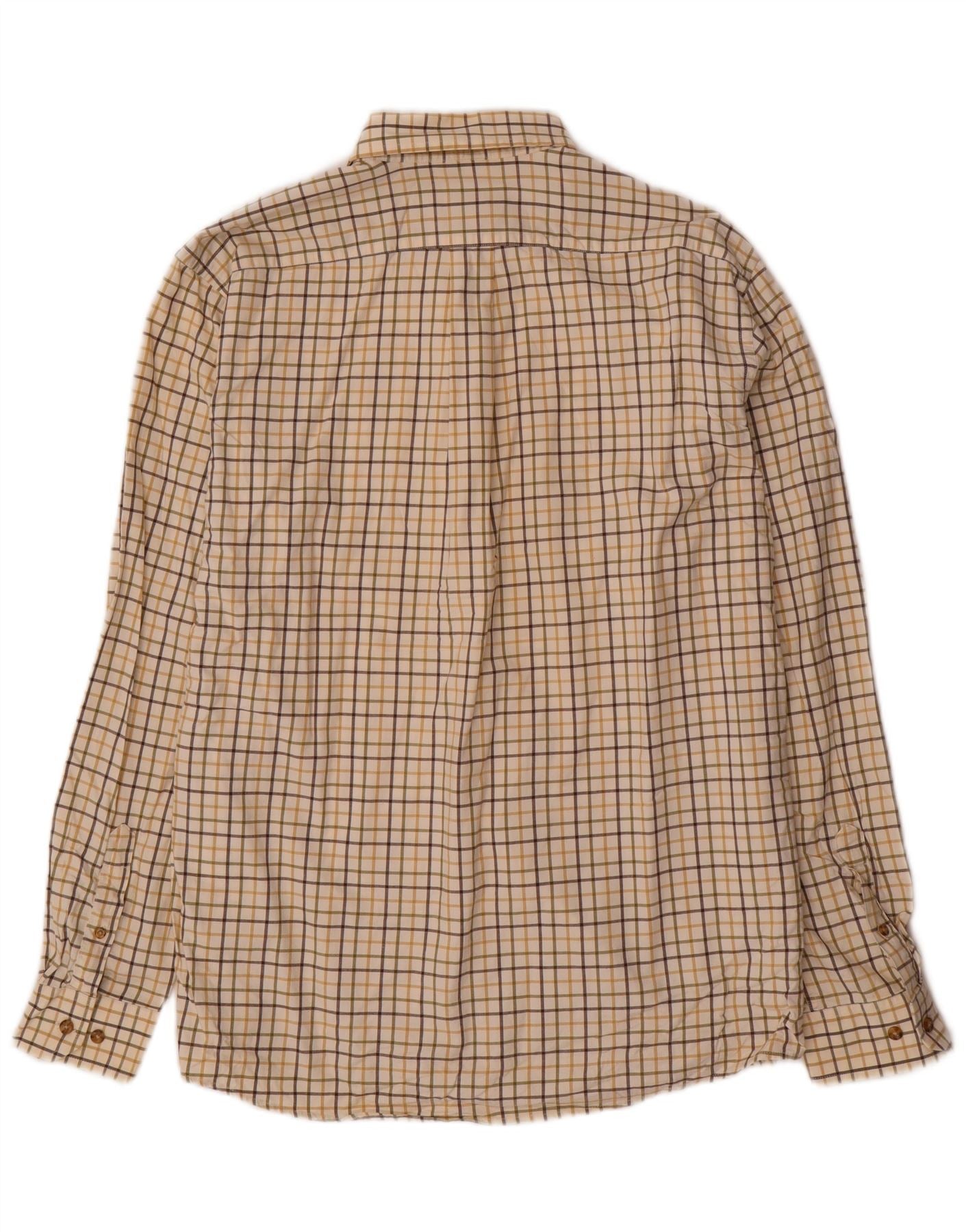 EDDIE BAUER Mens Shirt Large Beige Check Cotton