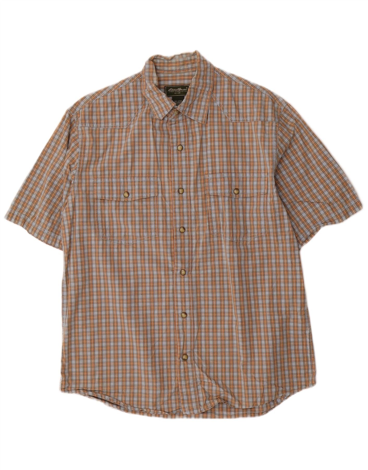 EDDIE BAUER Mens Short Sleeve Shirt Medium Blue Check Cotton