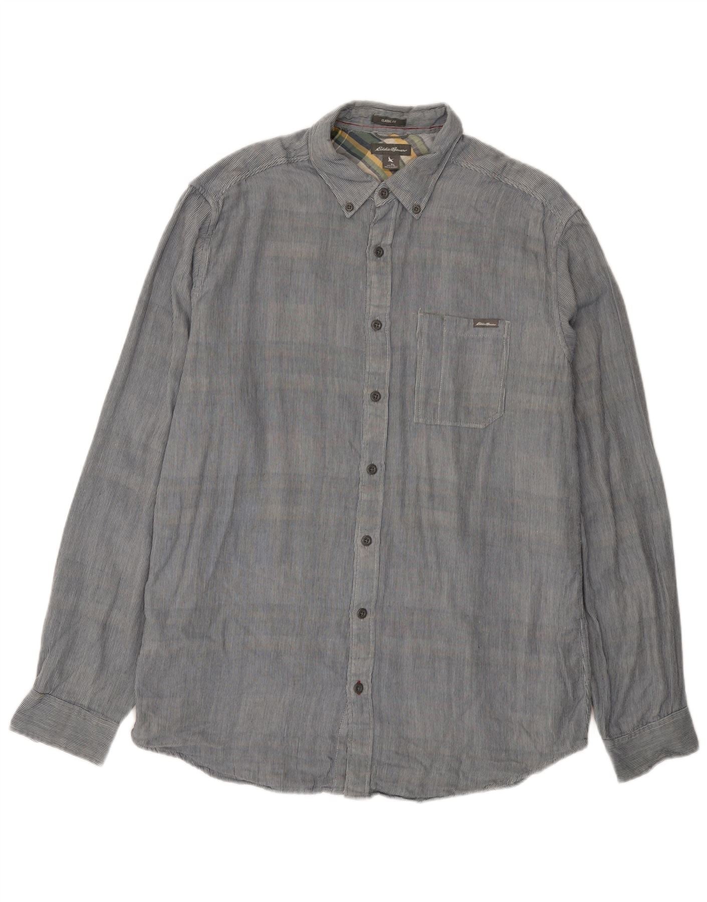 EDDIE BAUER Mens Tall Classic Fit Shirt Large Blue Cotton