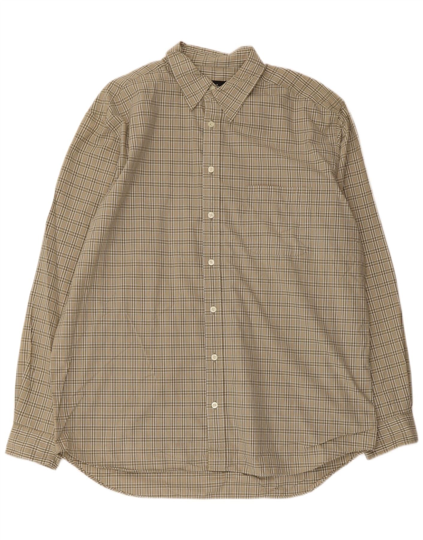 EDDIE BAUER Mens Tall Shirt Large Khaki Check Cotton