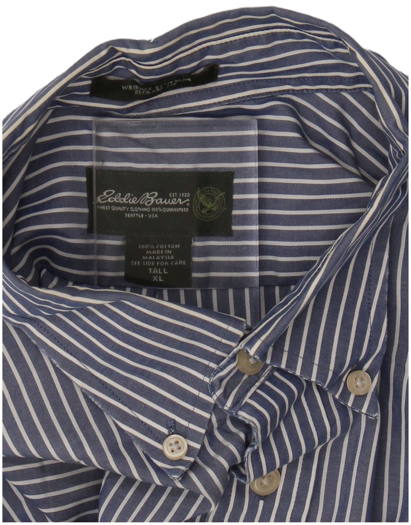 EDDIE BAUER Mens Tall Shirt XL Blue Pinstripe Cotton