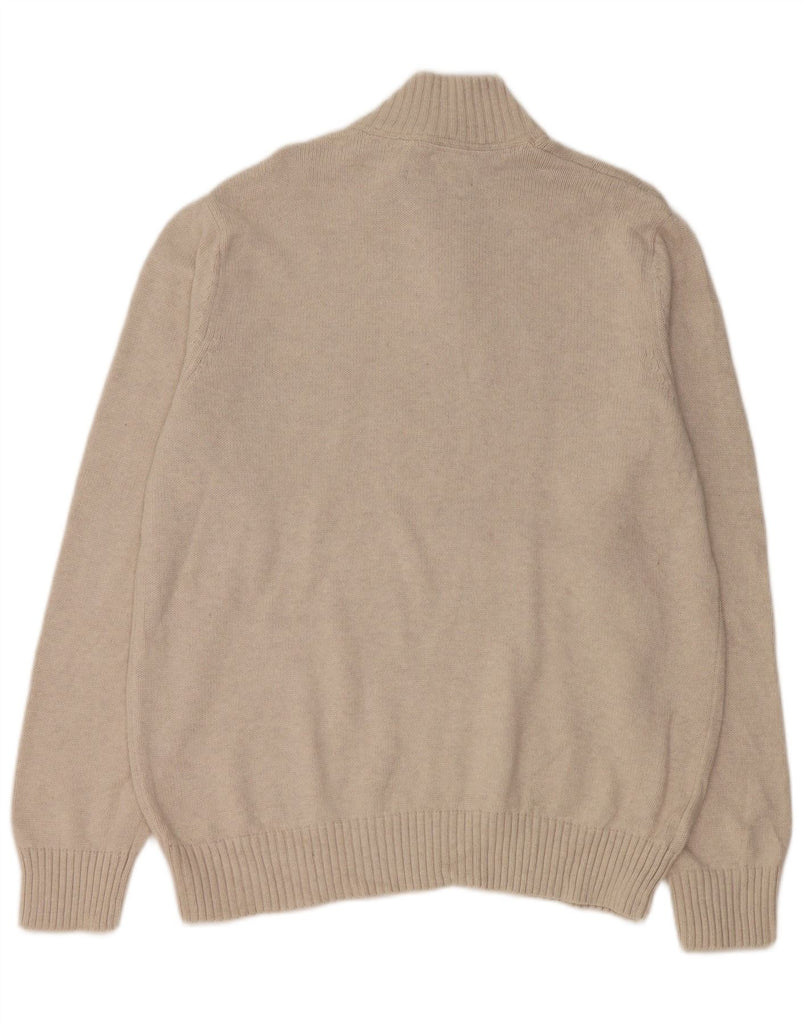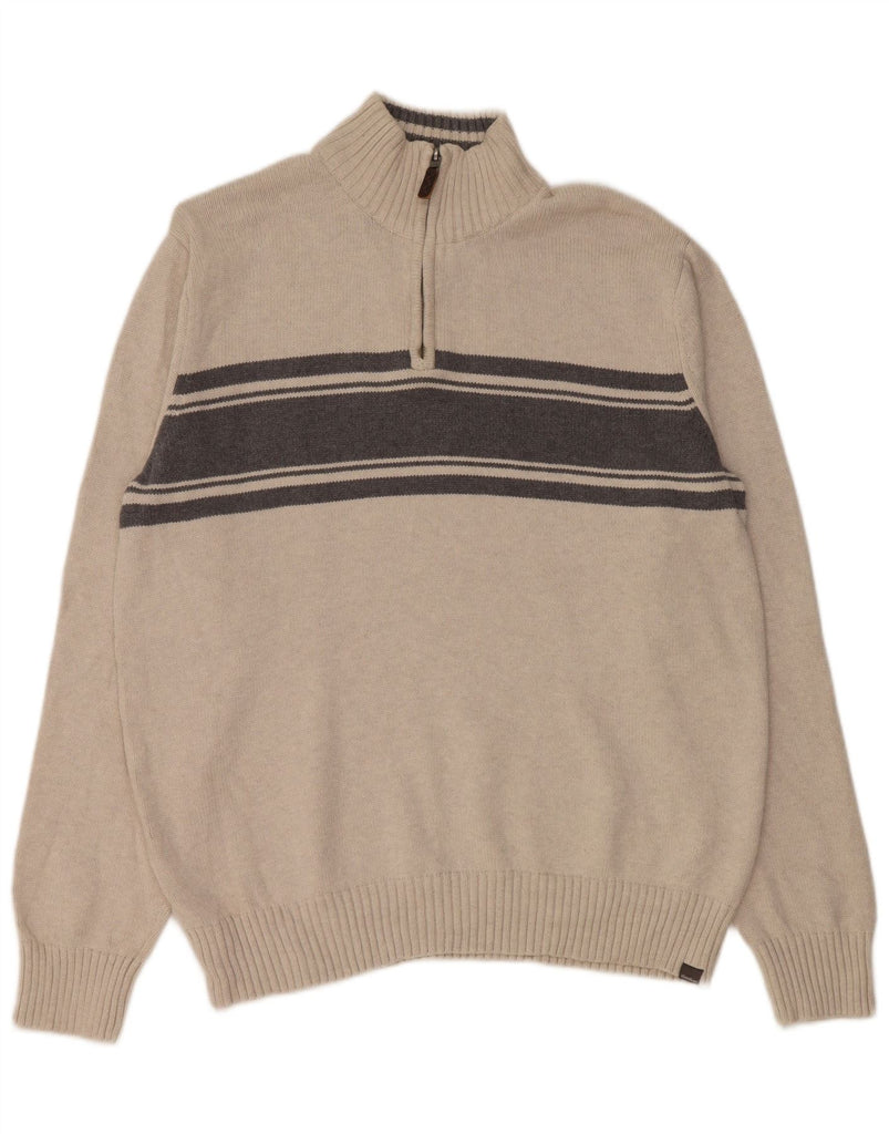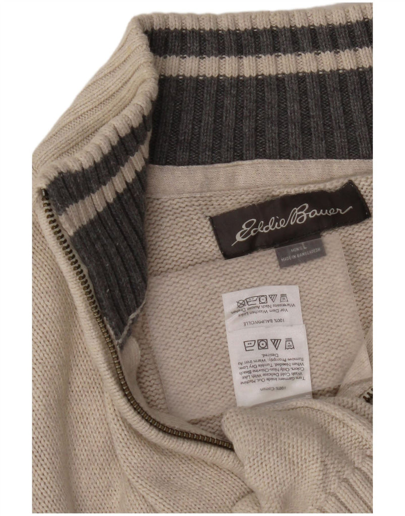 EDDIE BAUER Mens Zip Neck Jumper Sweater Large Beige Colourblock Cotton