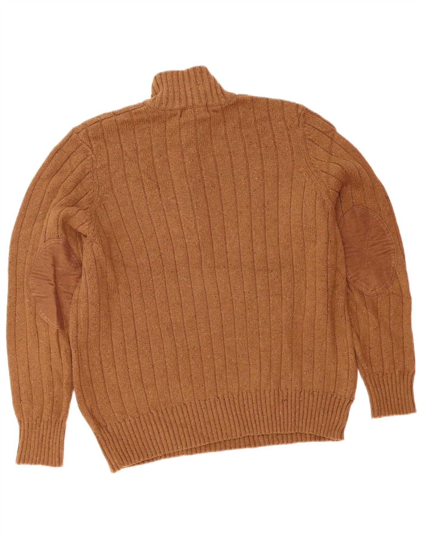 EDDIE BAUER Mens Zip Neck Jumper Sweater Medium Brown Flecked Cotton