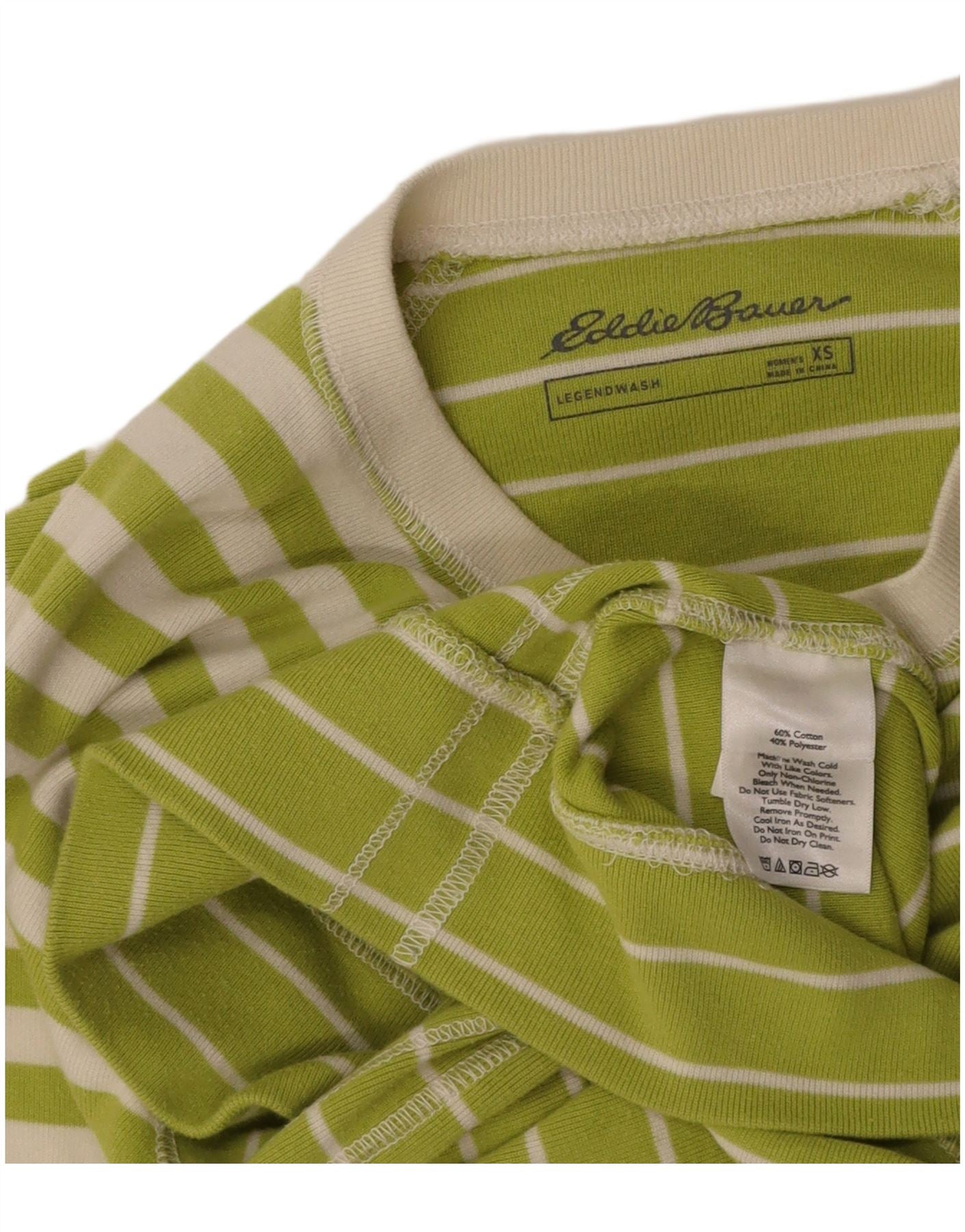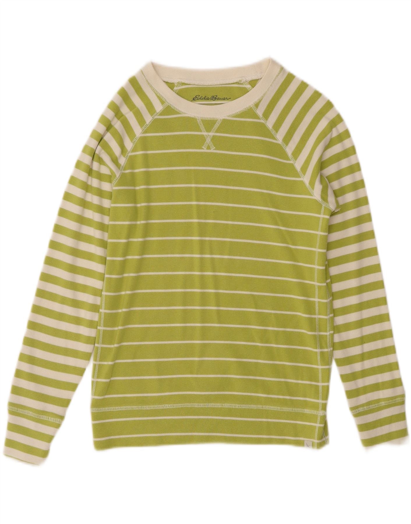 EDDIE BAUER Womens Boat Neck Jumper Sweater UK 6 XS Green Striped Cotton
