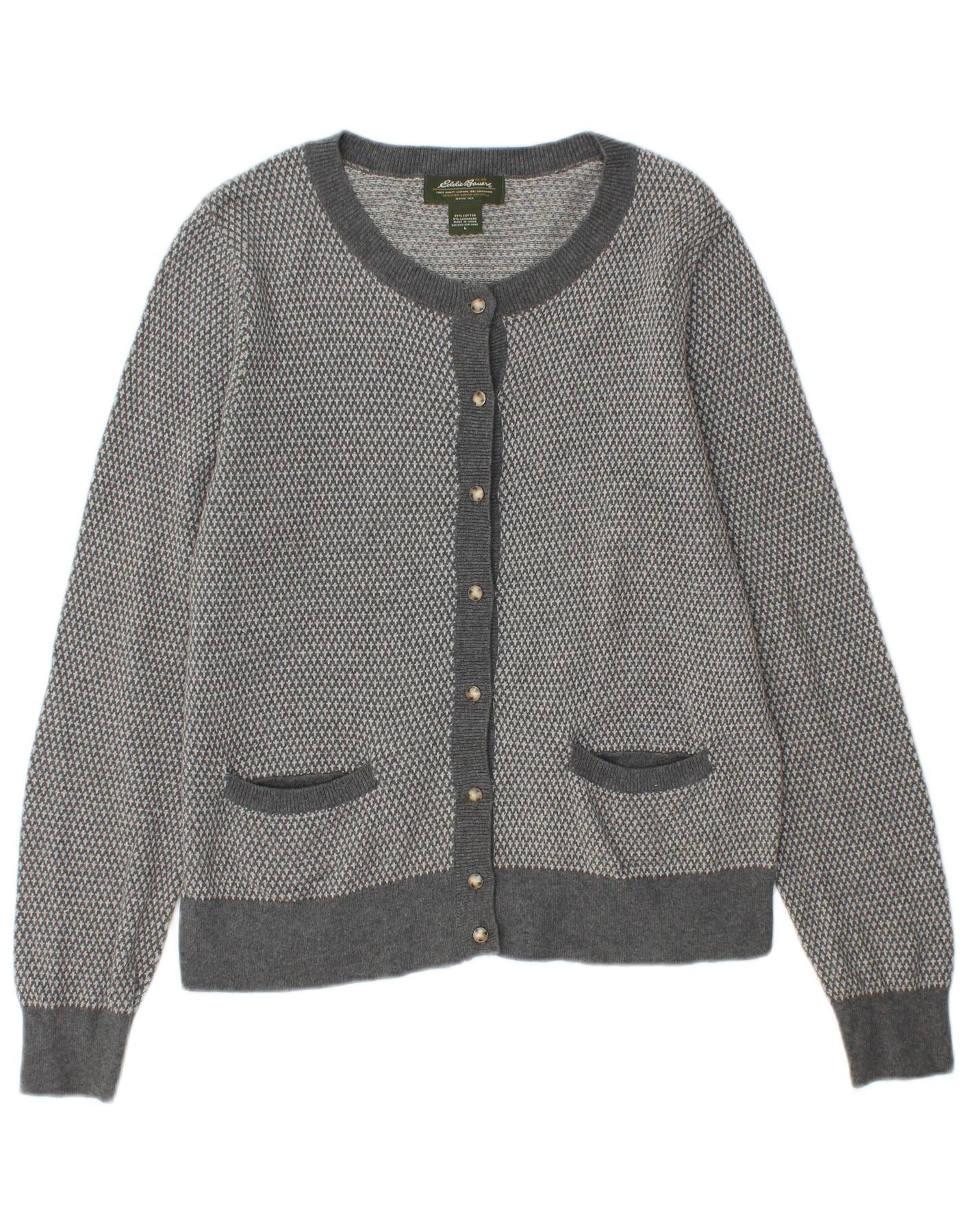 EDDIE BAUER Womens Cardigan Sweater UK 14 Large Grey Cotton
