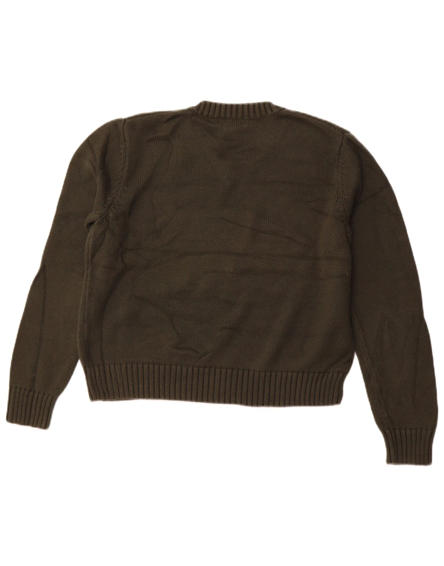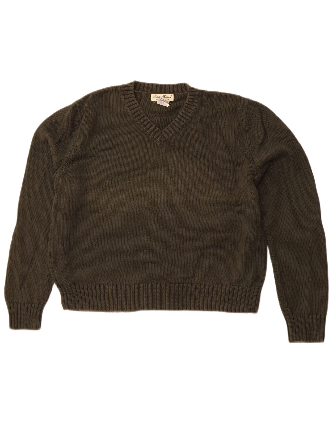 EDDIE BAUER Womens Crop V-Neck Jumper Sweater UK 16 Large Green Cotton