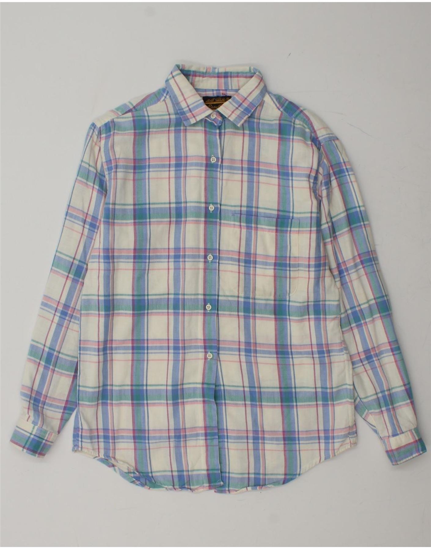 EDDIE BAUER Womens Flannel Shirt UK 14 Medium Blue Check Cotton
