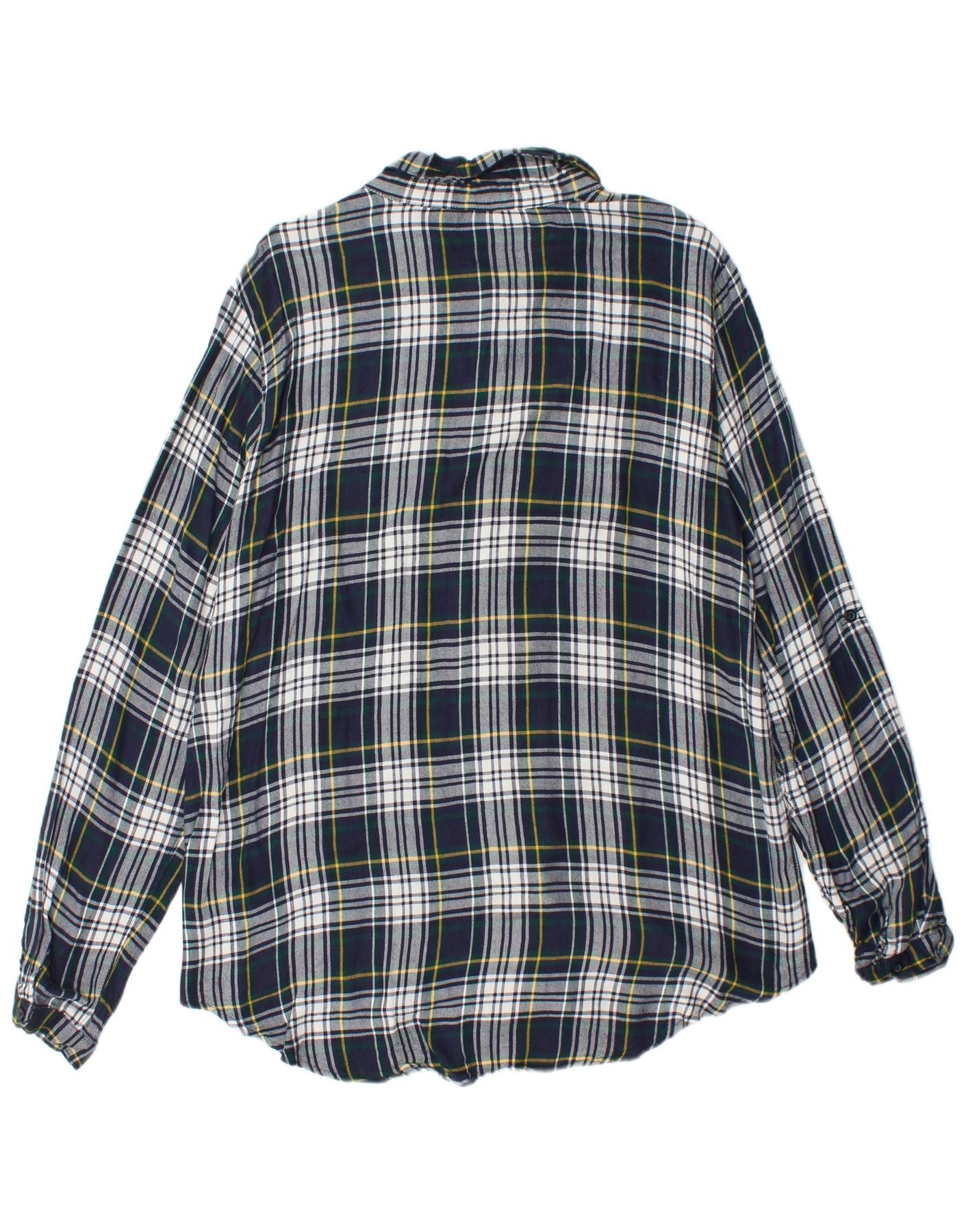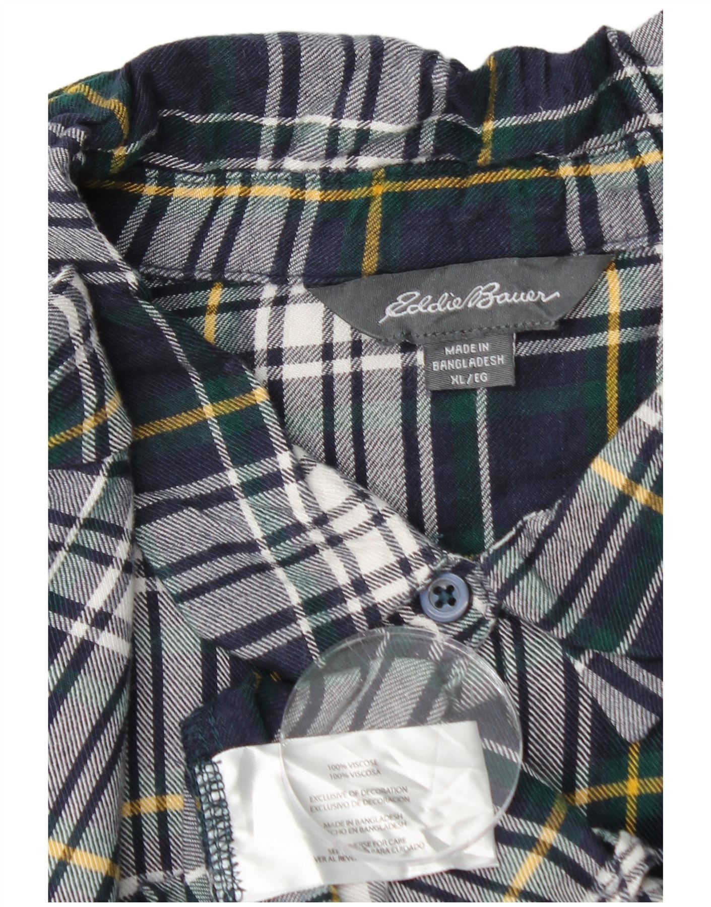 EDDIE BAUER Womens Flannel Shirt UK 18 XL Navy Blue Check Viscose