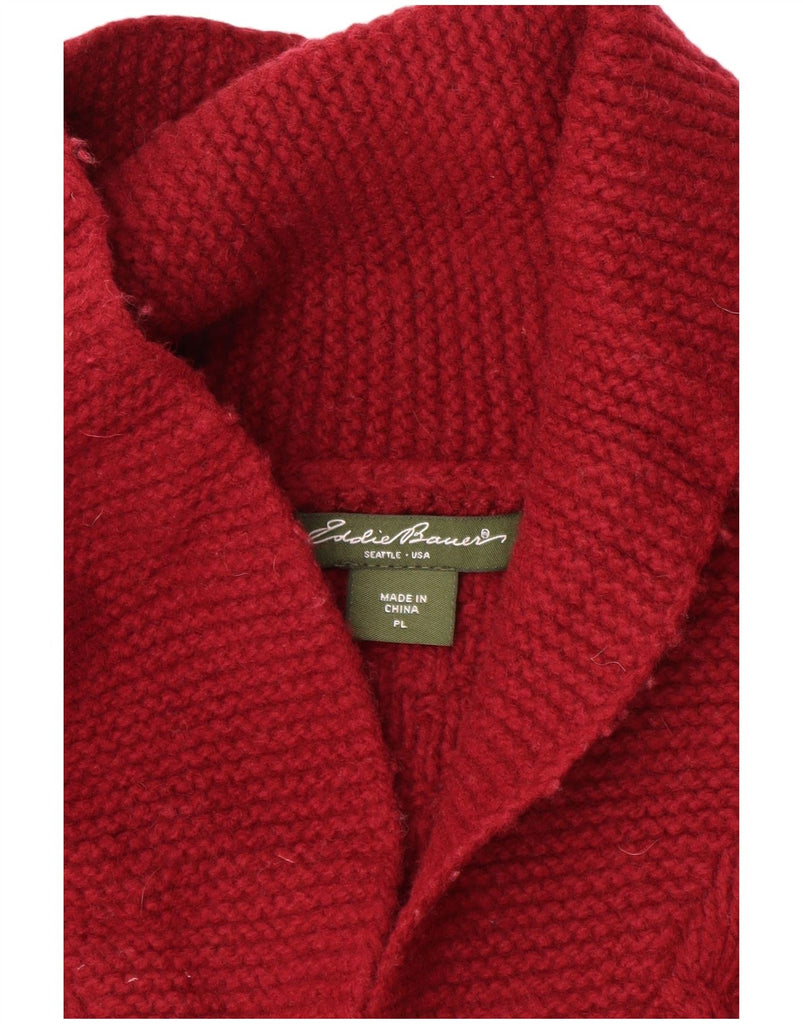 EDDIE BAUER Womens Seattle Cardigan Sweater UK 14 Large Burgundy Lambswool