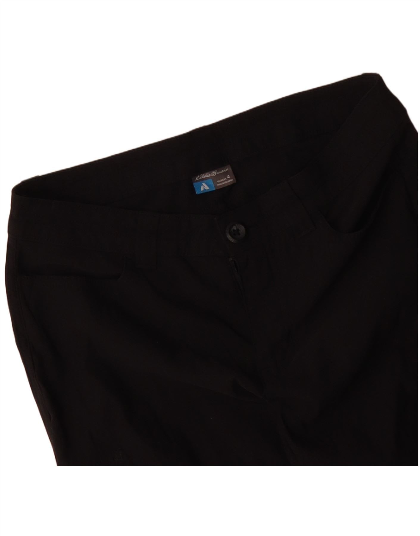 - AI Description: These Eddie Bauer womens Cargo Trousers are crafted from a lightweight, breathable woven fabric in classic black. They feature a regular fit with straight legs for comfortable movement. The button and zip closure ensures a secure fit. Practical zipped pockets add functional detail and secure storage. The cargo style offers a relaxed yet structured silhouette, ideal for sports or casual wear.