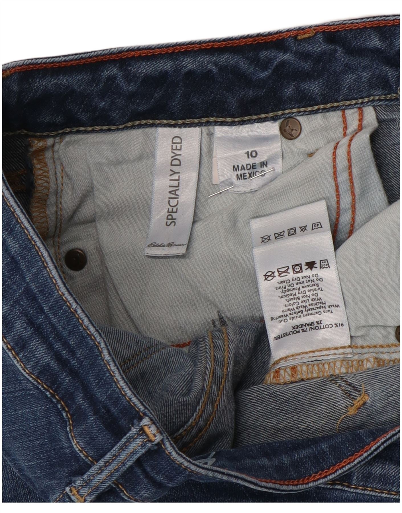 - AI Description: This Eddie Bauer womens straight jeans are crafted from blue stretch denim. The mid-rise waist and button closure offer a comfortable, secure fit. Straight legs provide a classic, versatile silhouette. The denim fabric ensures both durability and flexibility. Practical pockets complete the design, blending style with everyday utility.