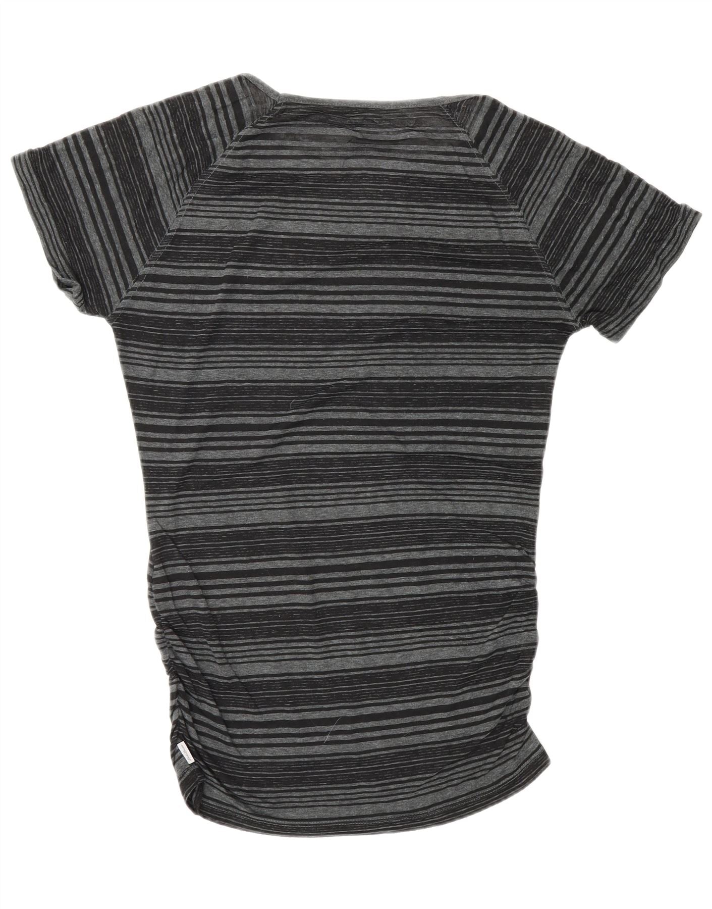 EDDIE BAUER Womens T-Shirt Top UK 6 XS Grey Striped