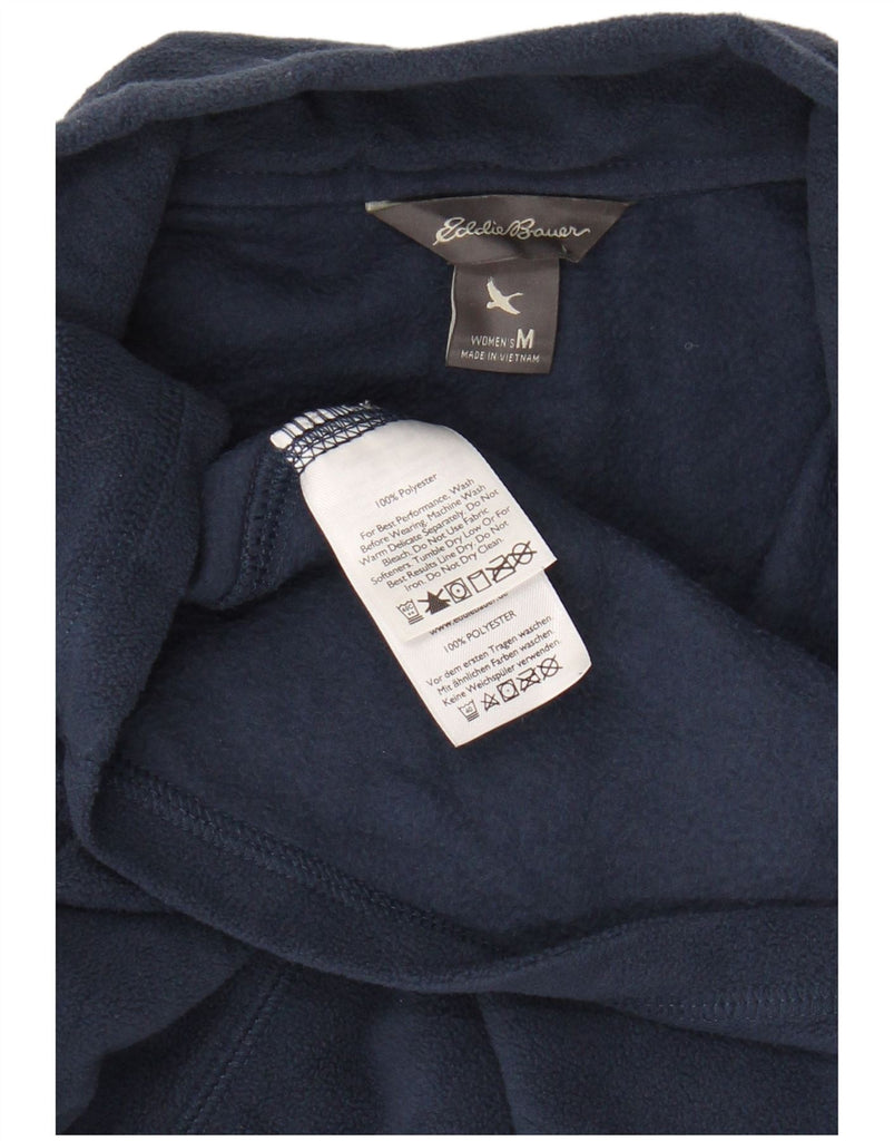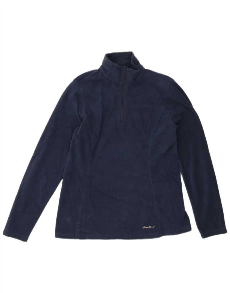 EDDIE BAUER Womens Zip Neck Fleece Jumper UK 14 Medium Navy Blue Polyester
