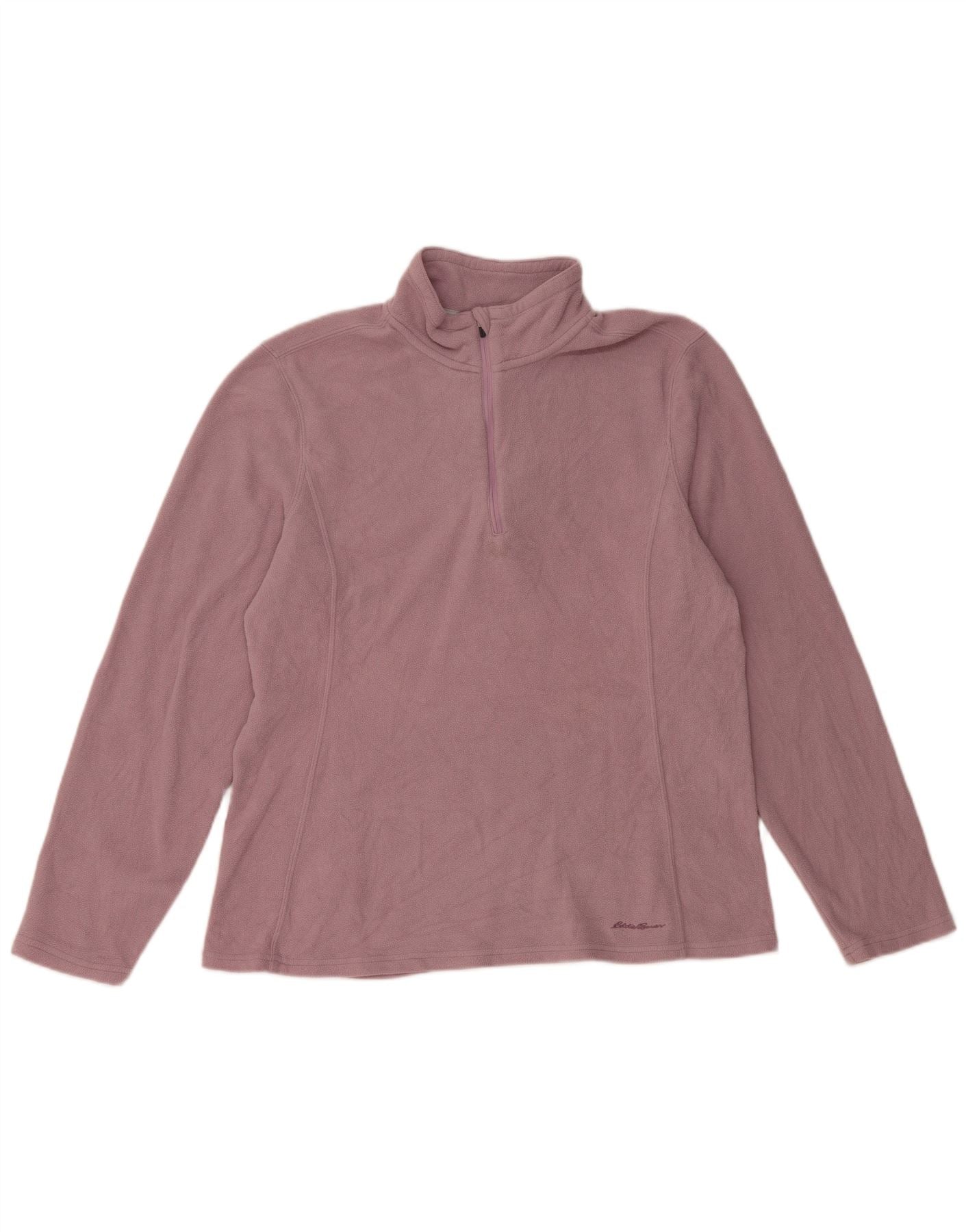 EDDIE BAUER Womens Zip Neck Fleece Jumper UK 16 Large Purple Polyester