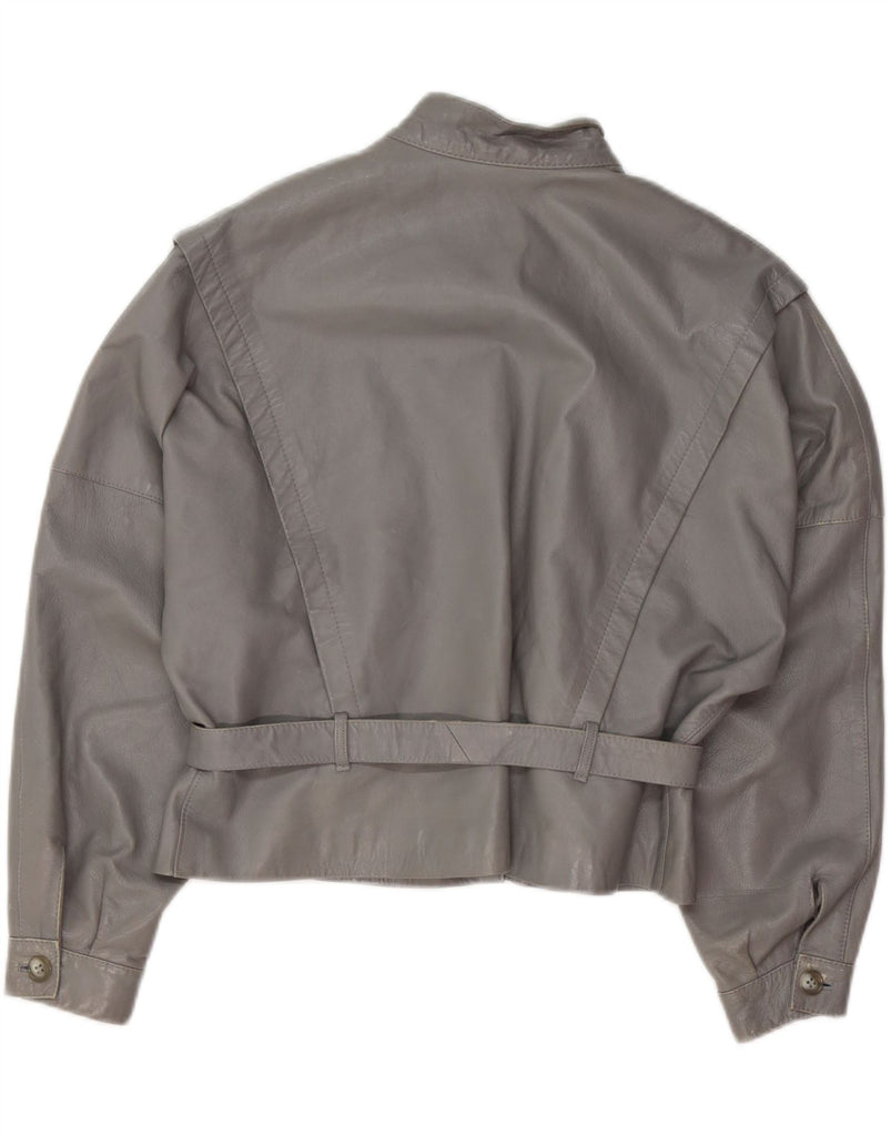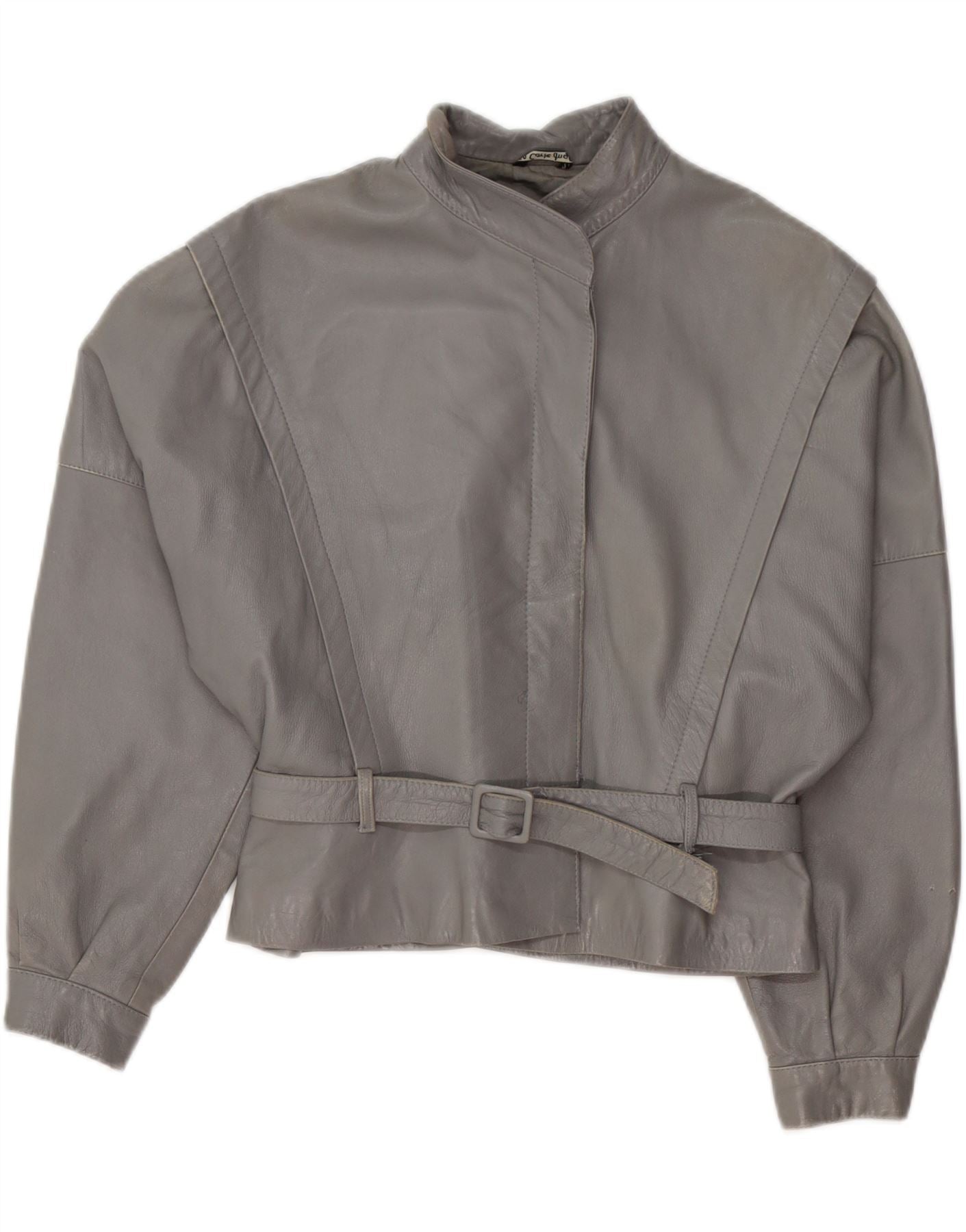 EL CORTE INGLES Womens Crop Leather Jacket IT 46 Large Grey Leather