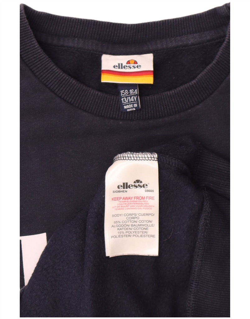 ELLESSE Boys Graphic Sweatshirt Jumper 13-14 Years Navy Blue Cotton