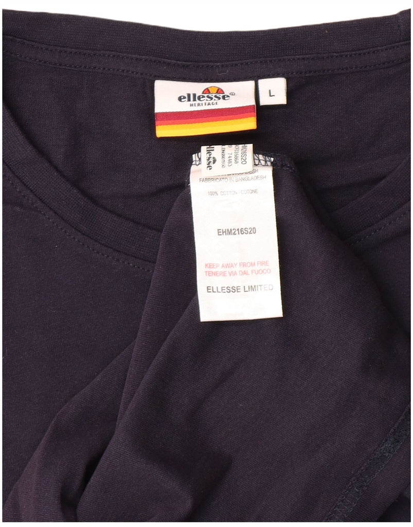 ELLESSE Mens Herritage Fit Graphic T-Shirt Top Large Navy Blue Cotton