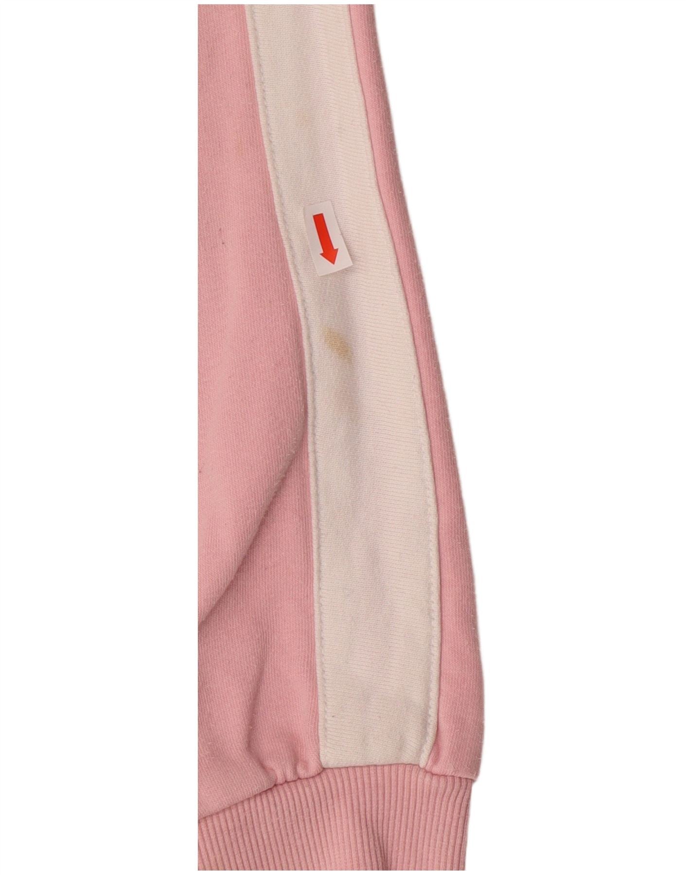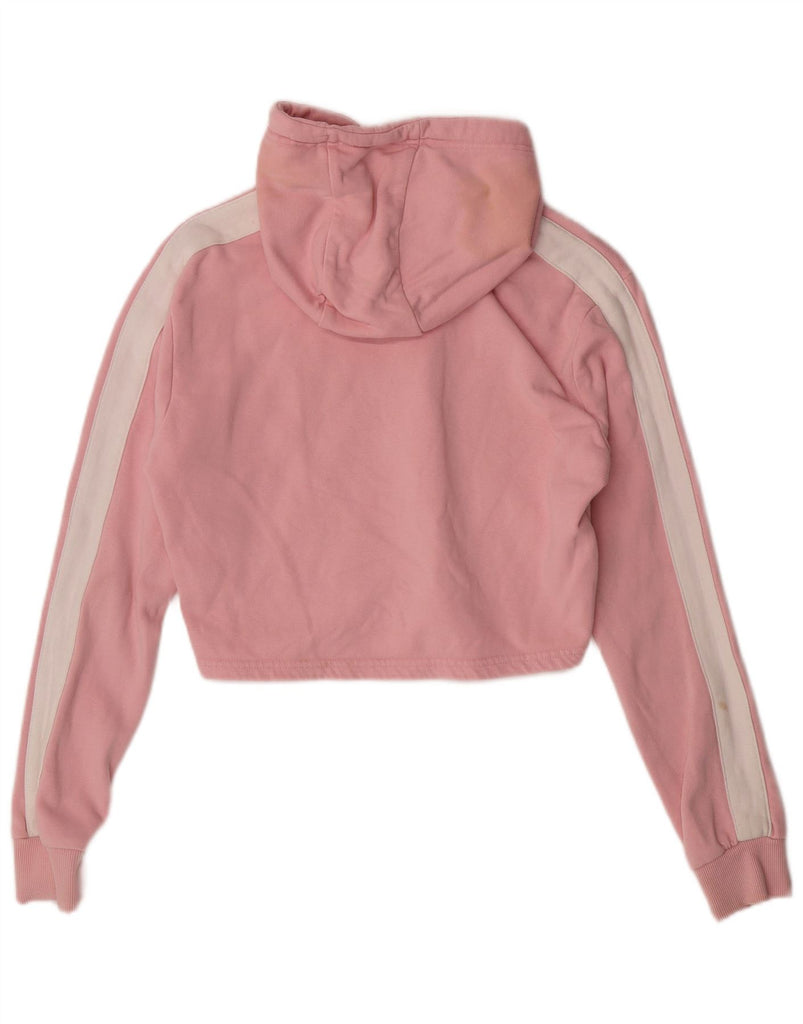 ELLESSE Womens Crop Graphic Hoodie Jumper UK 12 Medium Pink Colourblock