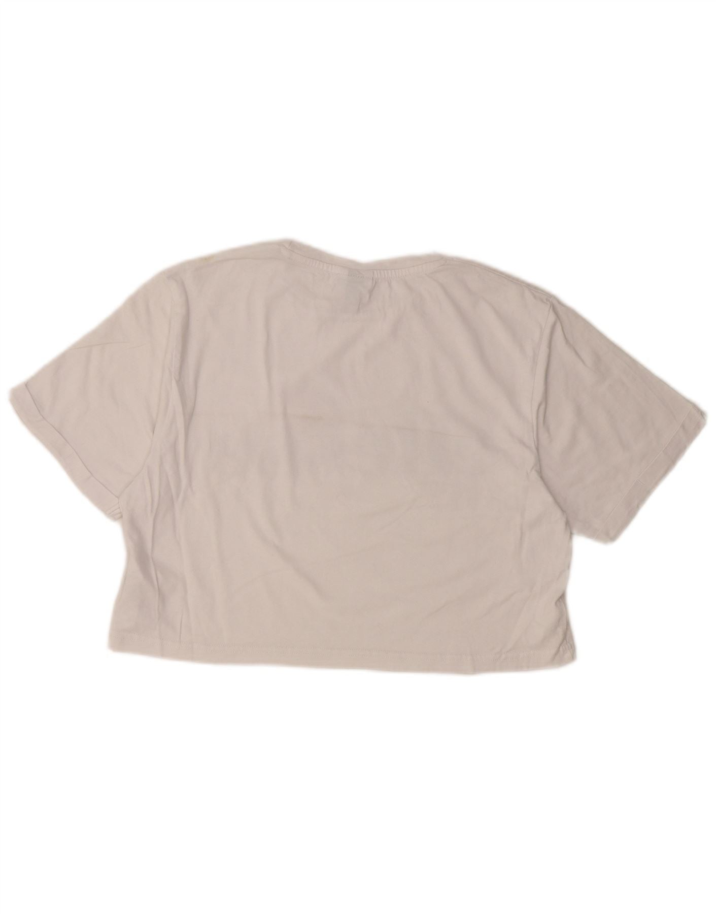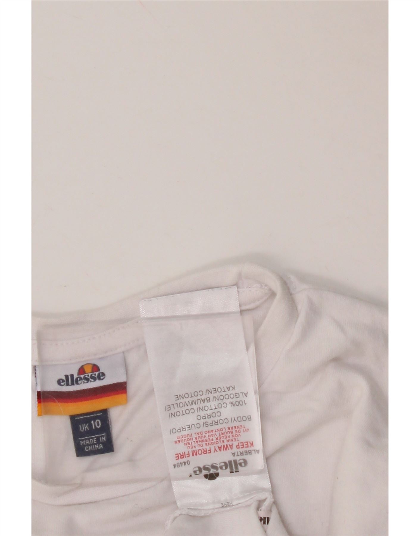 ELLESSE Womens Crop Graphic T-Shirt Top UK 10 Small White Cotton