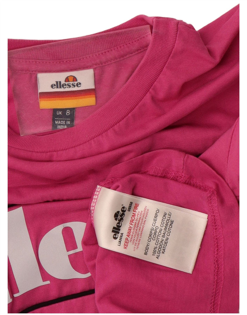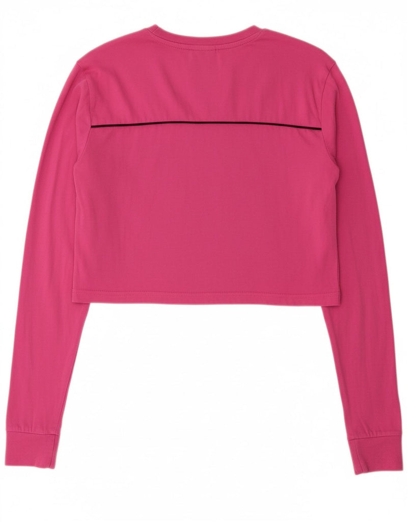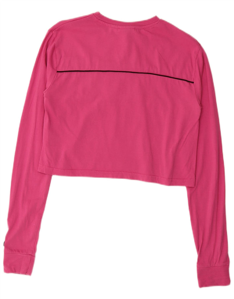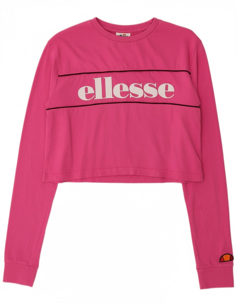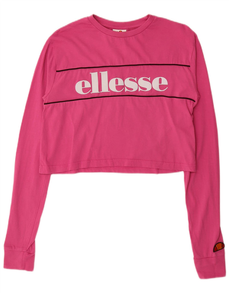 ELLESSE Womens Crop Graphic Top Long Sleeve UK 8 Small Pink Cotton