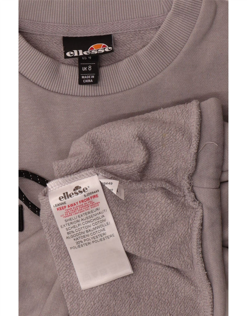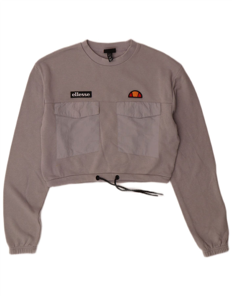 ELLESSE Womens Graphic Crop Sweatshirt Jumper UK 8 Small Purple Cotton