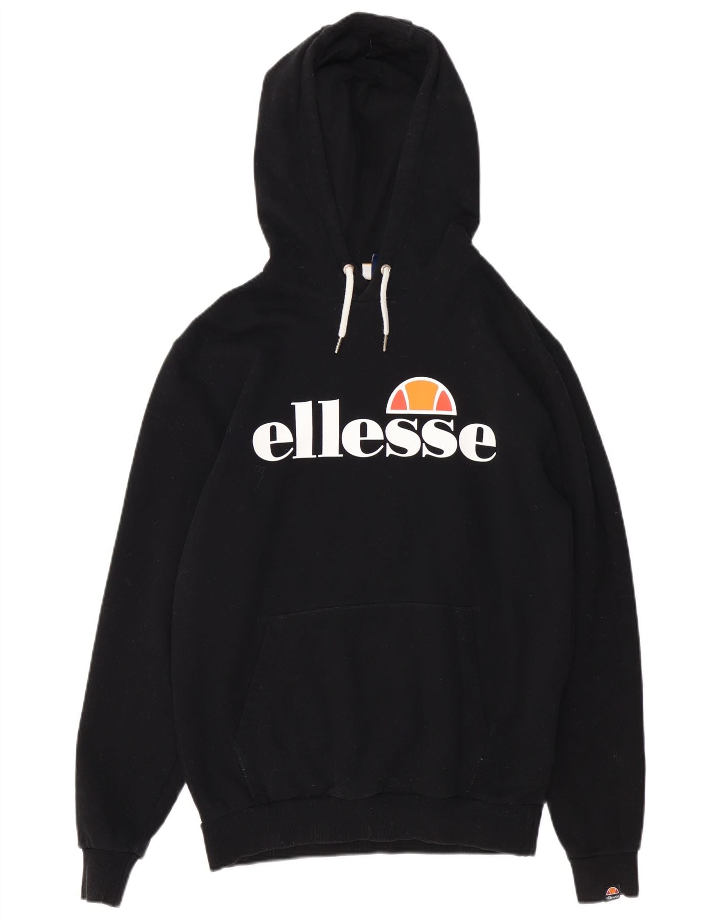 ELLESSE Womens Graphic Hoodie Jumper UK 14 Medium Black Cotton