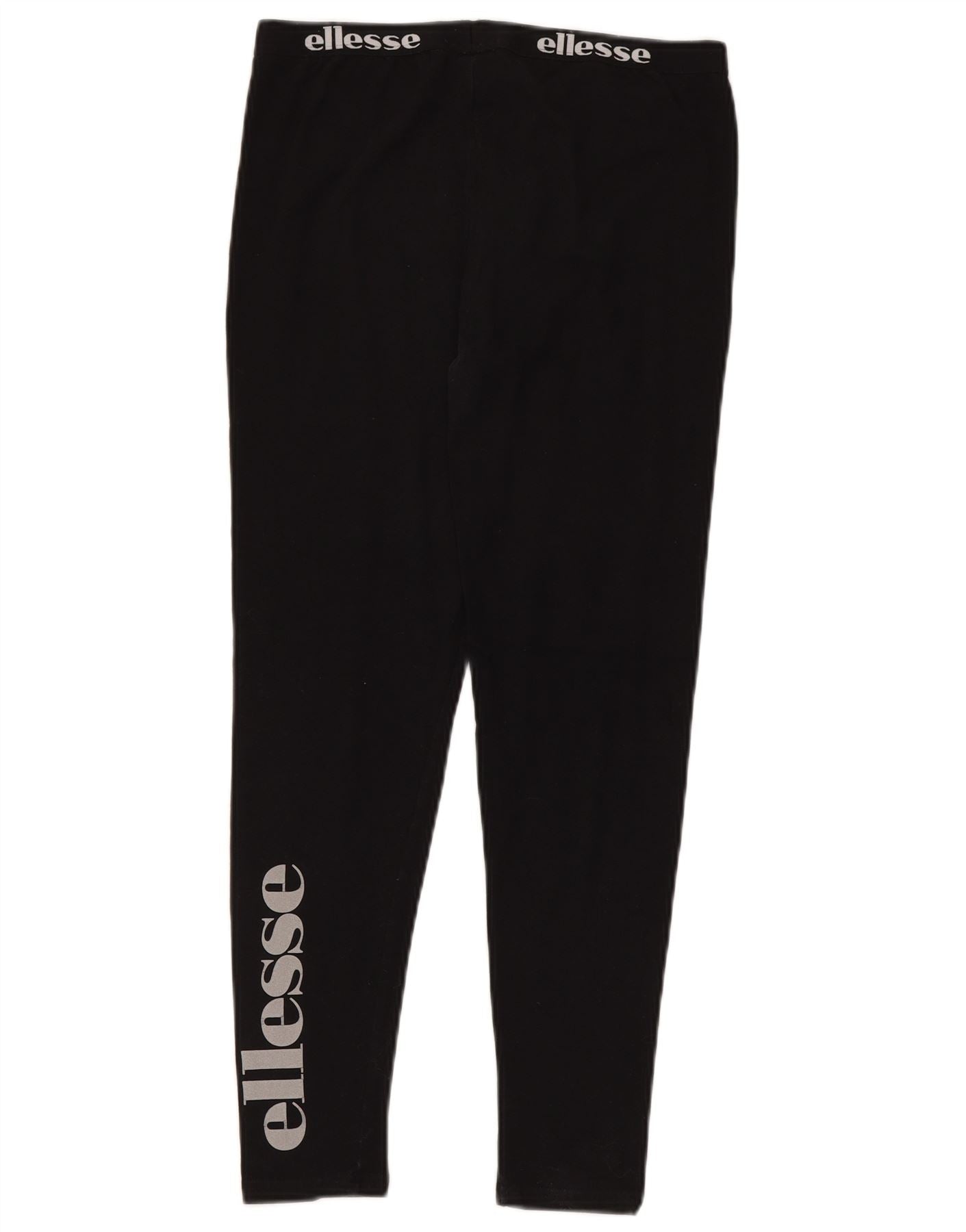 ELLESSE Womens Graphic Leggings UK 12 Medium Black Cotton