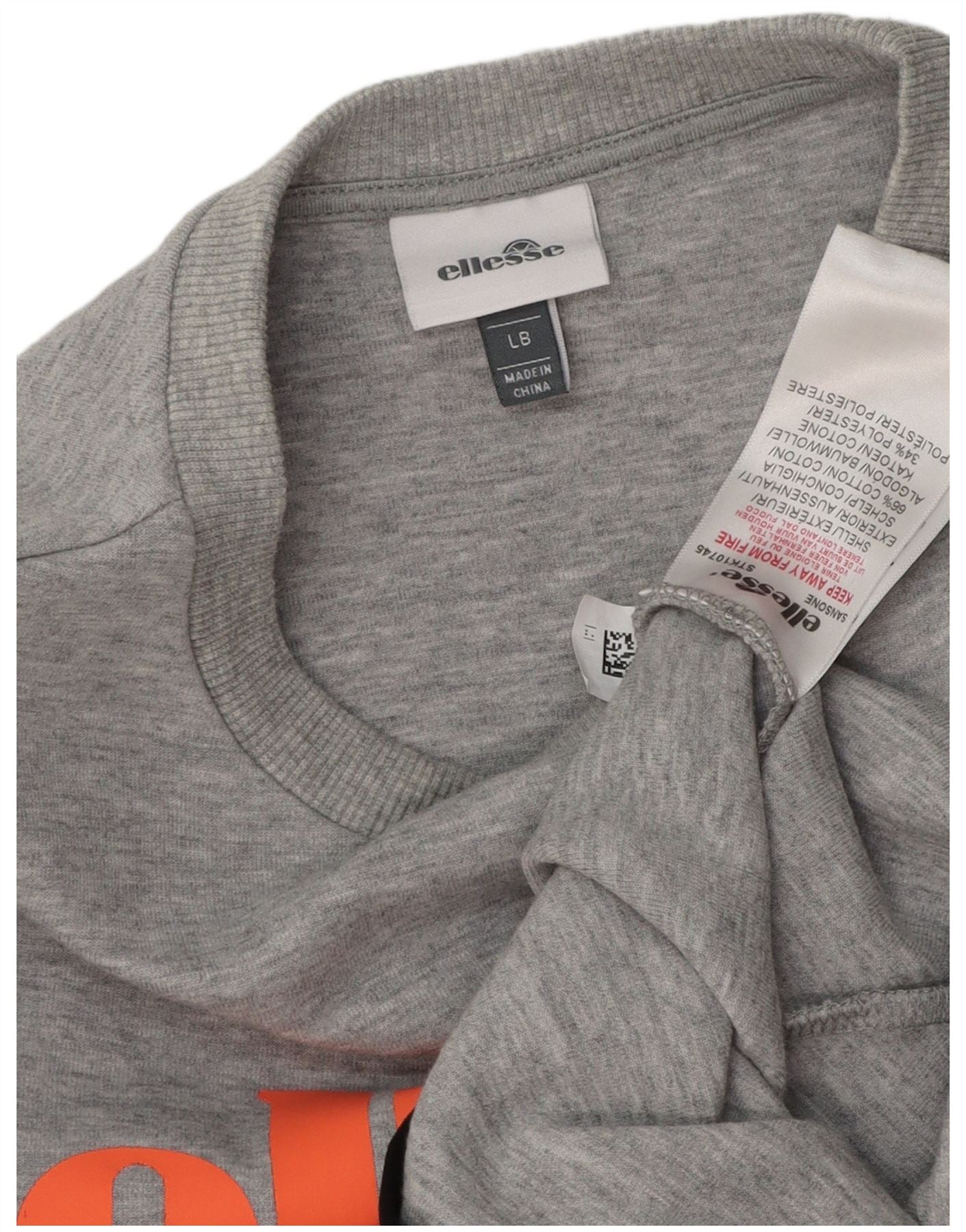 ELLESSE Womens Graphic Sweatshirt Jumper UK 14 Large Grey Flecked Cotton