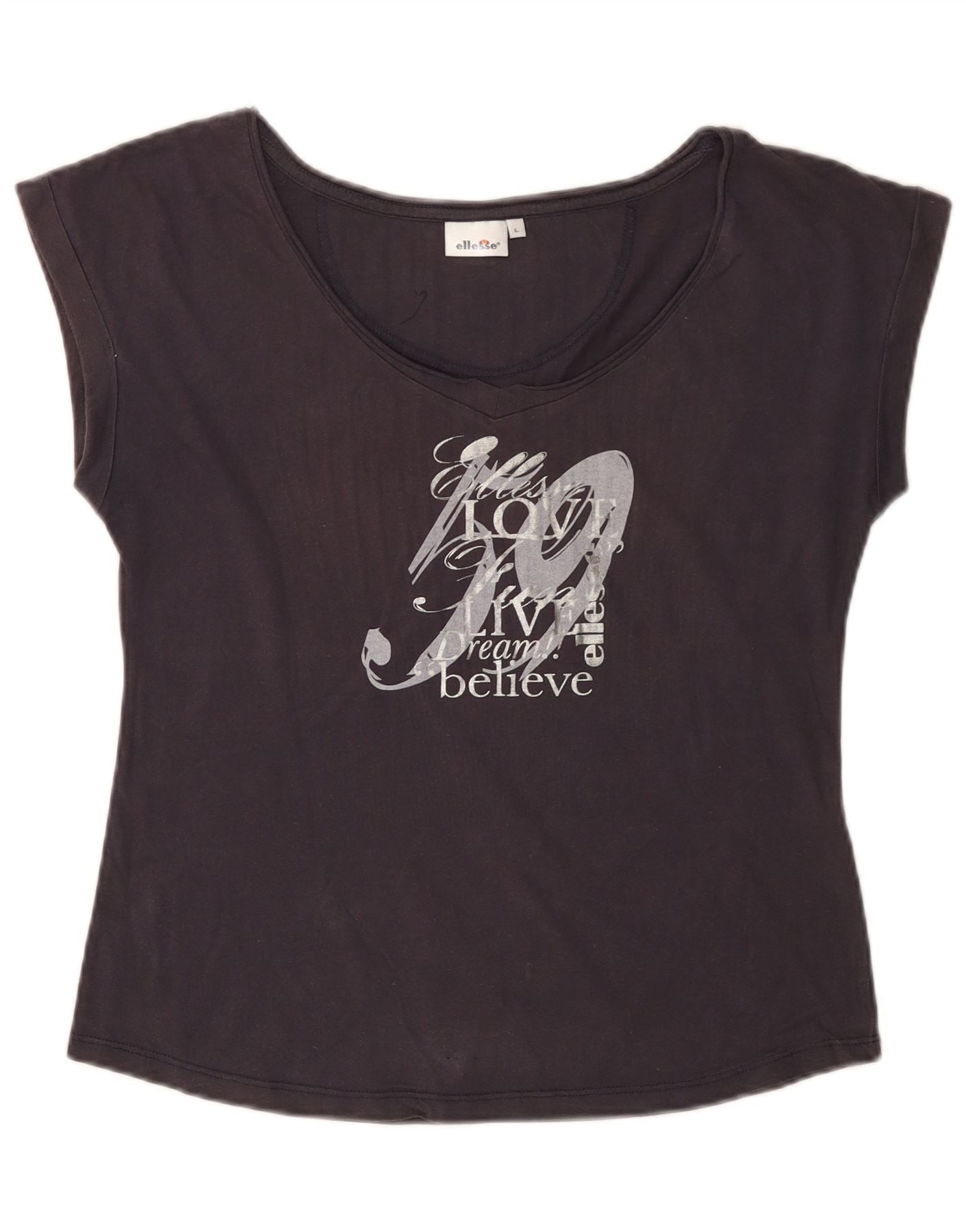 ELLESSE Womens Graphic T-Shirt Top UK 14 Large Navy Blue Cotton