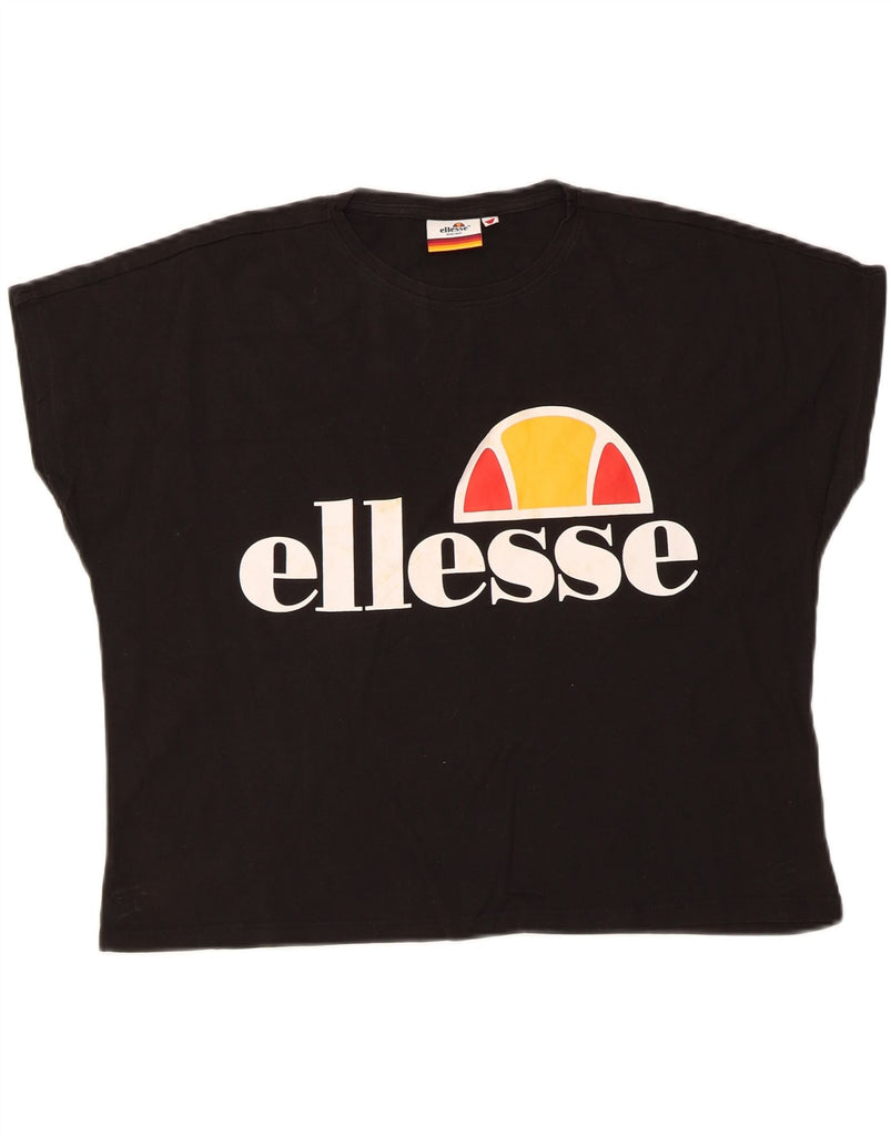 ELLESSE Womens Heritage Oversized Graphic T-Shirt Top UK 10 Small Black