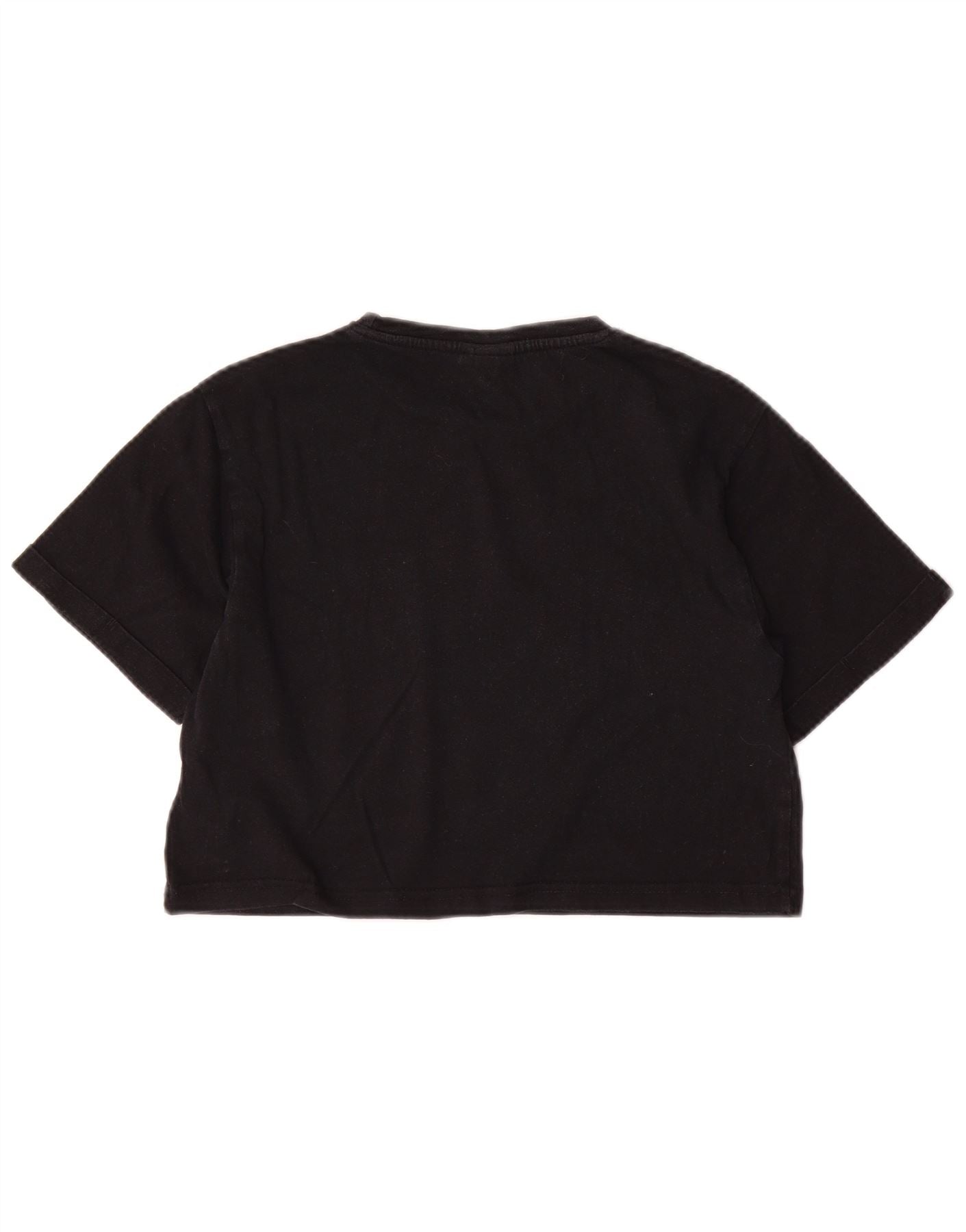 ELLESSE Womens Oversized Crop Graphic T-Shirt Top UK 6 XS Black Cotton