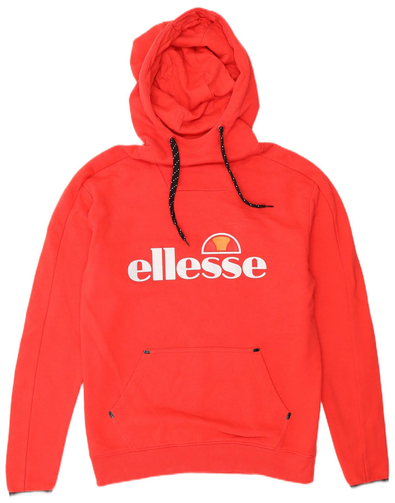 ELLESSE Womens Oversized Graphic Hoodie Jumper UK 10 Small Red Cotton