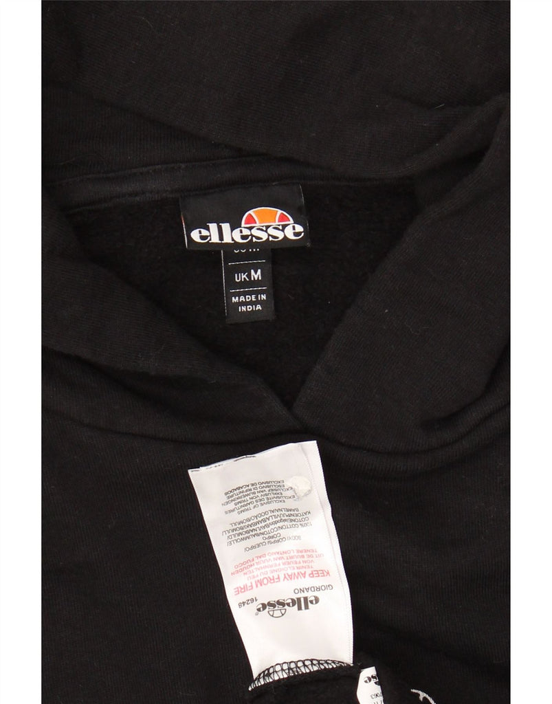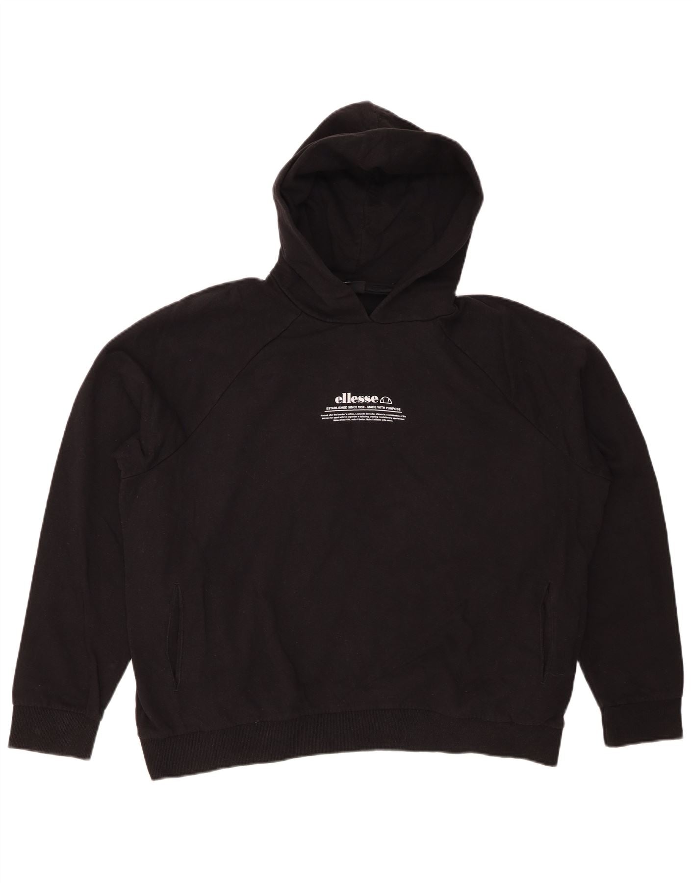ELLESSE Womens Oversized Graphic Hoodie Jumper UK 14 Medium Black Cotton