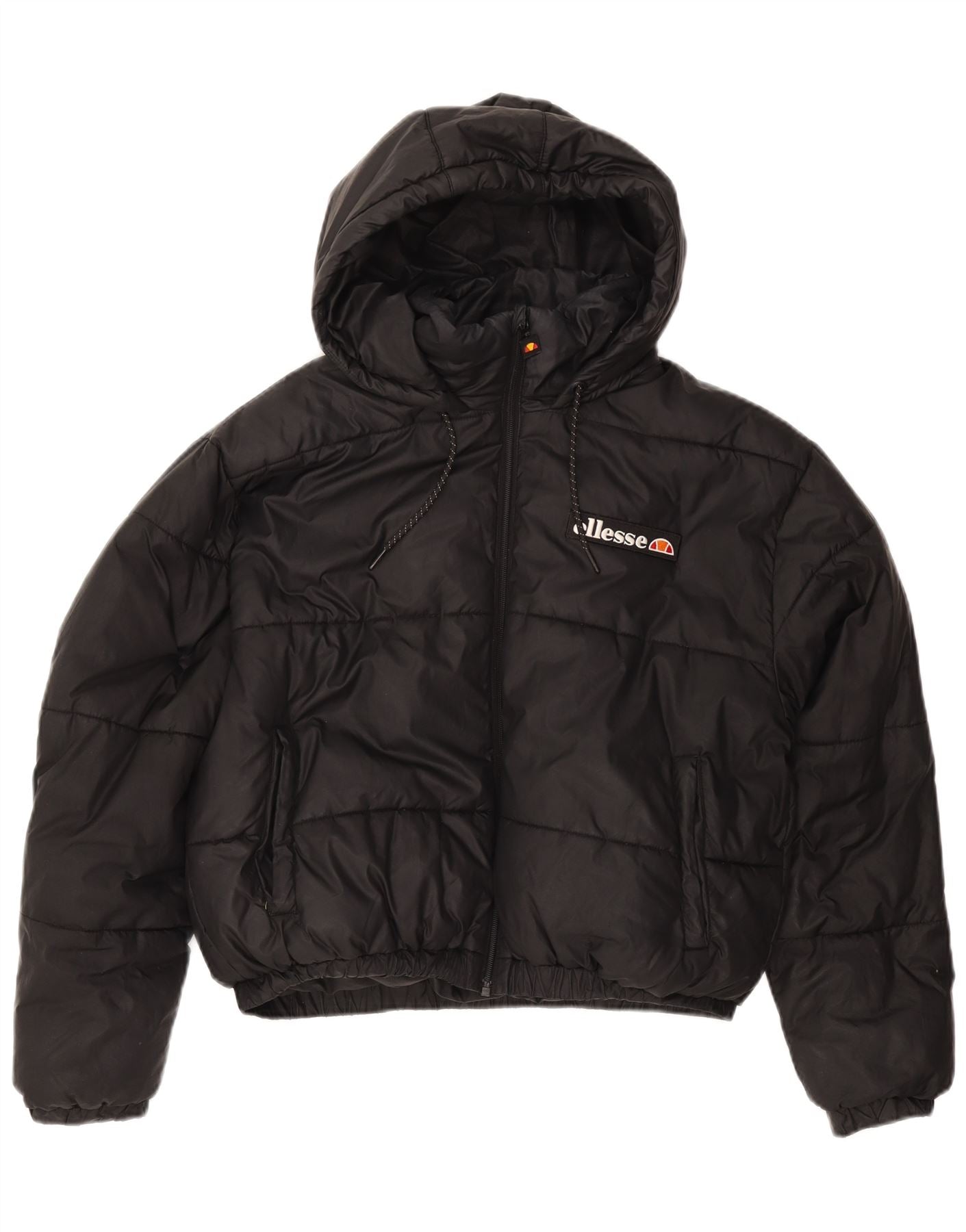 ELLESSE Womens Oversized Hooded Padded Jacket UK 12 Medium Black Polyester