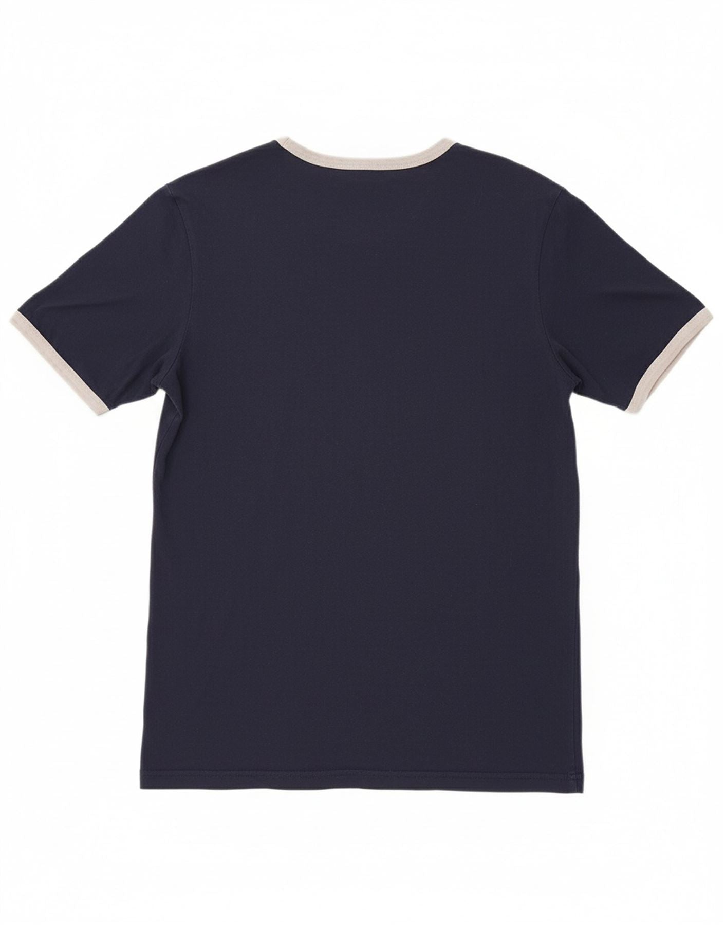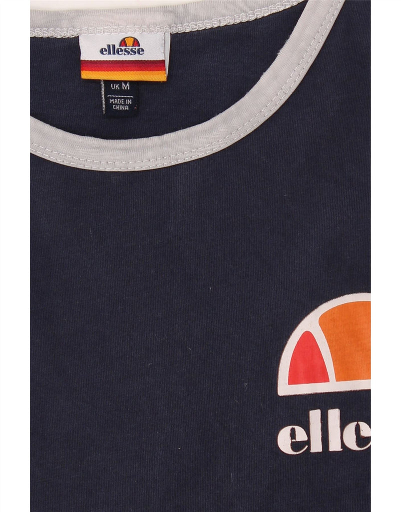 - AI Description: This Ellesse womens Graphic T-Shirt Top is crafted from soft navy blue jersey fabric. It features a classic round neck and short sleeves. The pullover design ensures easy wear. A regular fit offers comfortable everyday styling. The front is accented with a prominent Ellesse logo adding a signature sports-inspired touch.