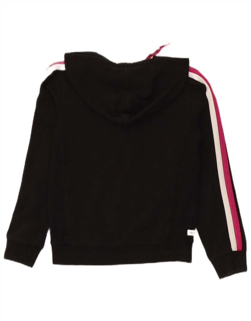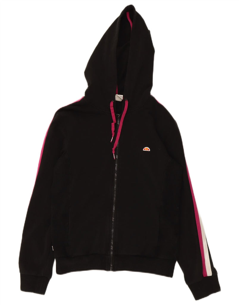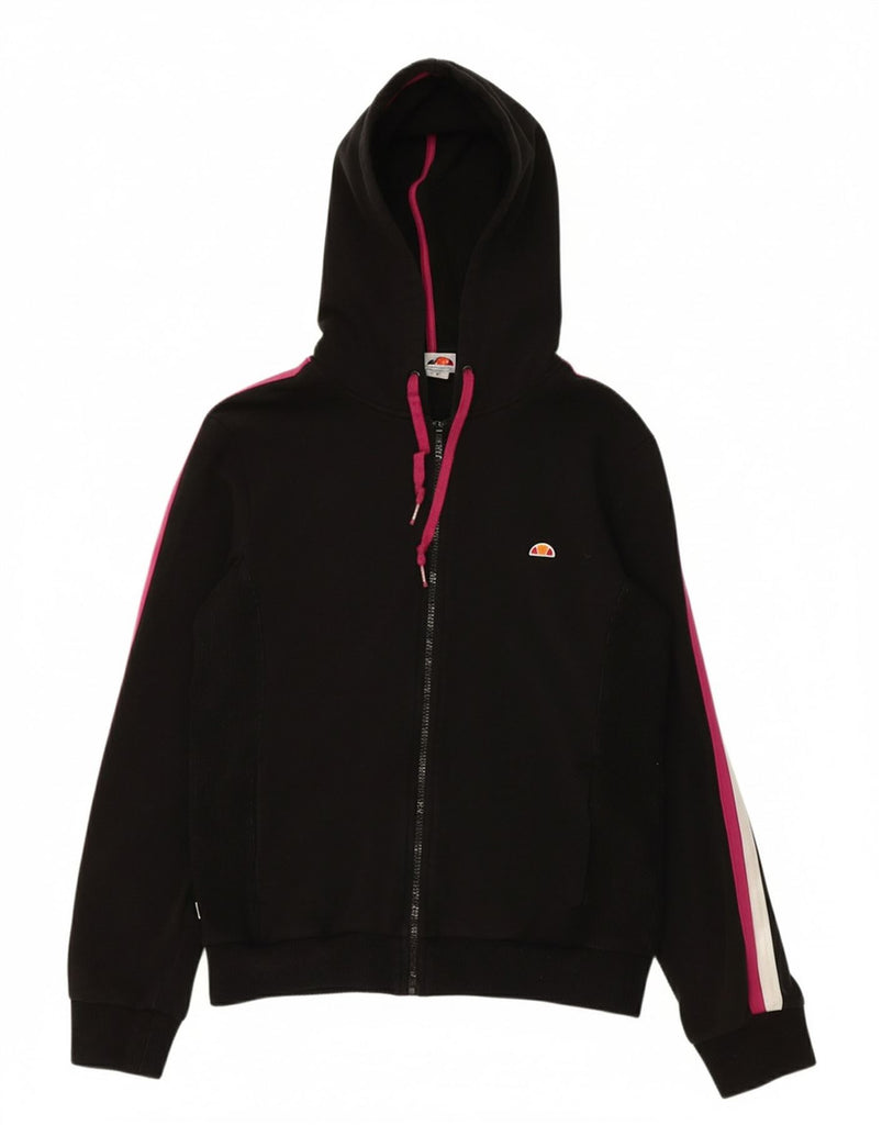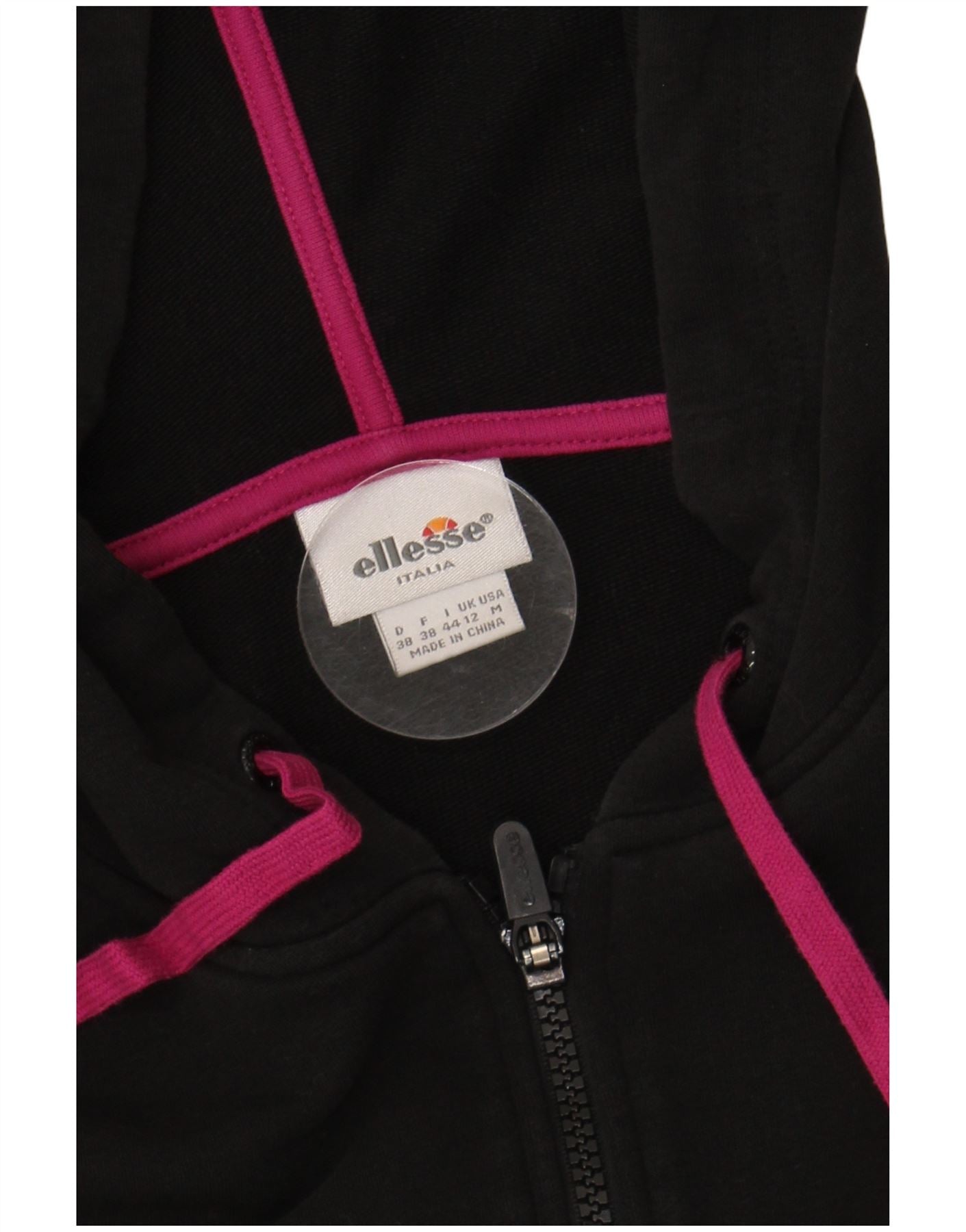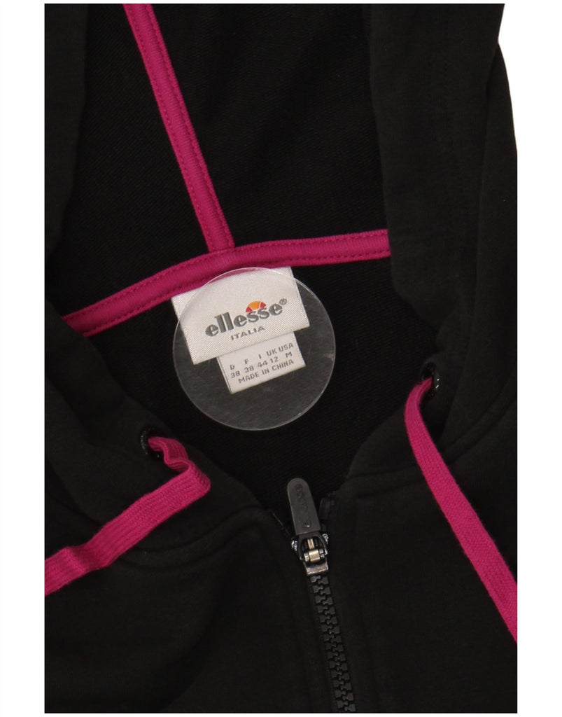 ELLESSE Womens Zip Hoodie Sweater UK 12 Medium Black Colourblock Cotton
