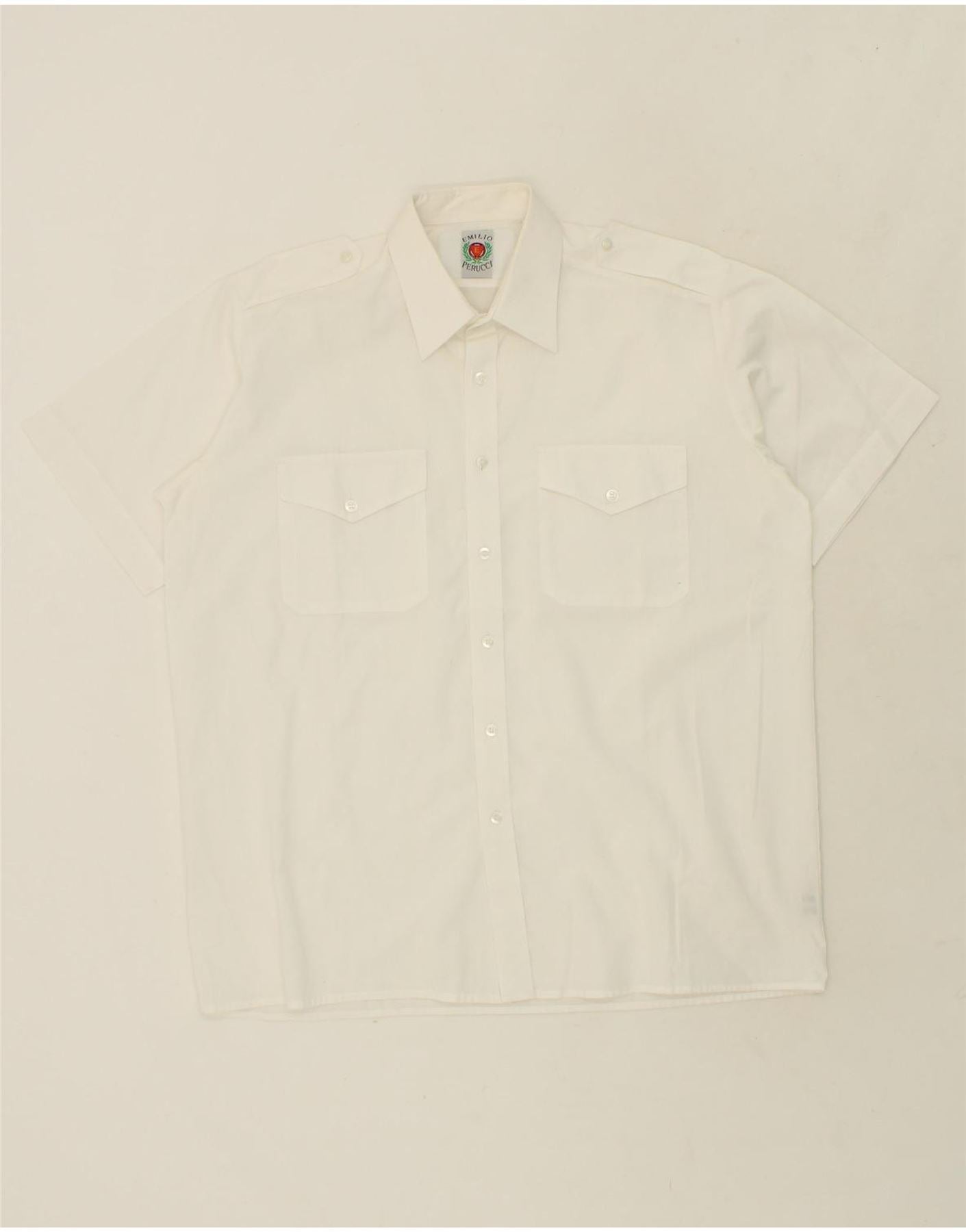 EMILIO PUCCI Mens Military Short Sleeve Shirt Size 40 41 Medium White