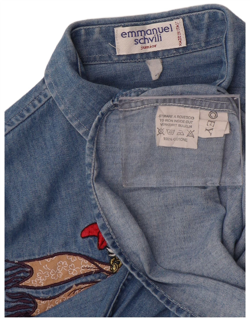 EMMANUEL SCHVILI Girls Disney Graphic Denim Shirt 13-14 Years Blue Cotton