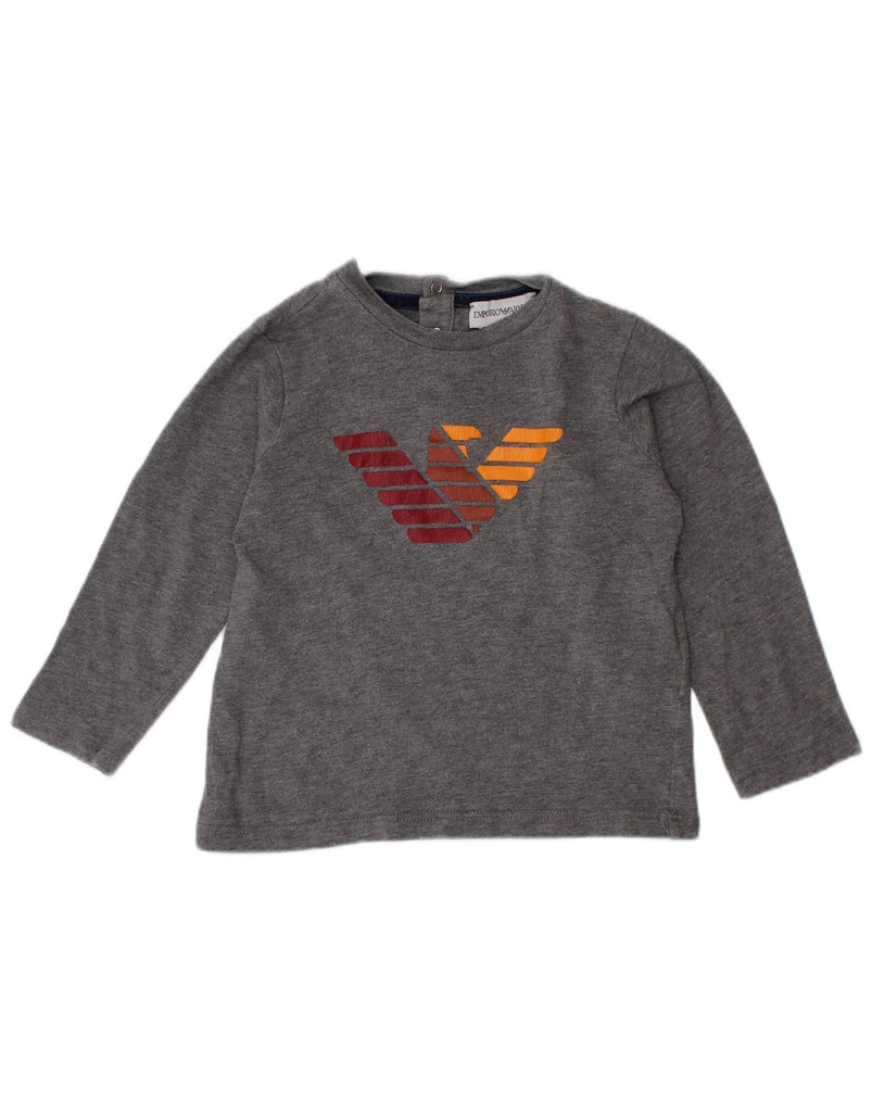EMPORIO ARMANI Baby Boys Graphic Top Long Sleeve 12-18 Months Grey Cotton