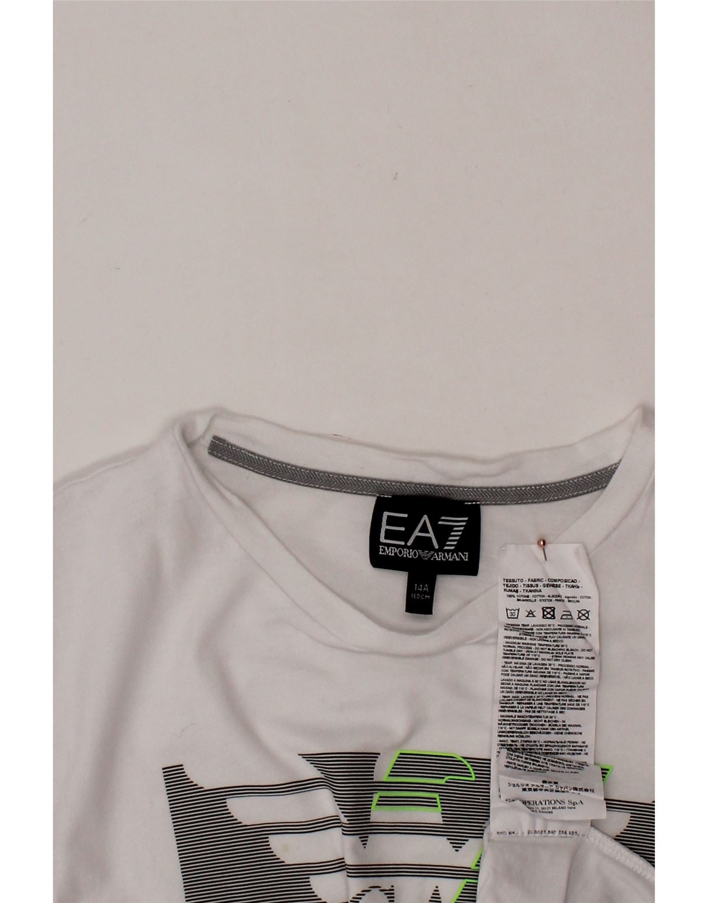 EMPORIO ARMANI Boys Graphic T-Shirt Top 13-14 Years White Cotton