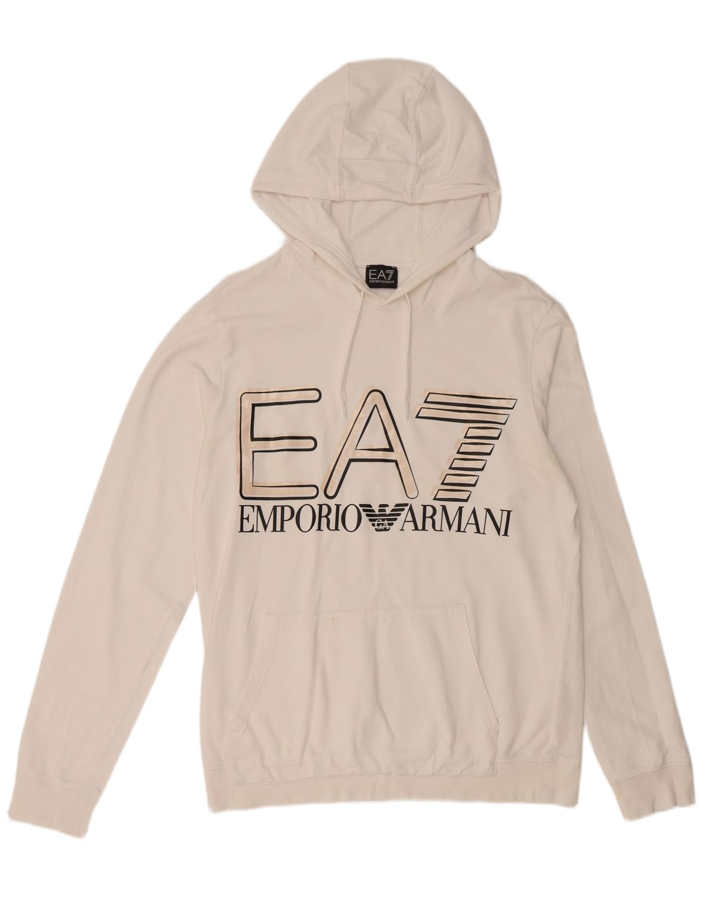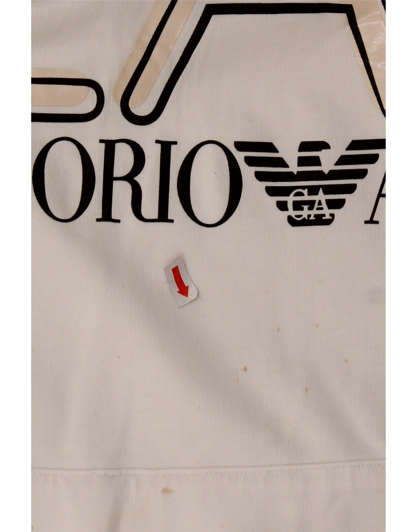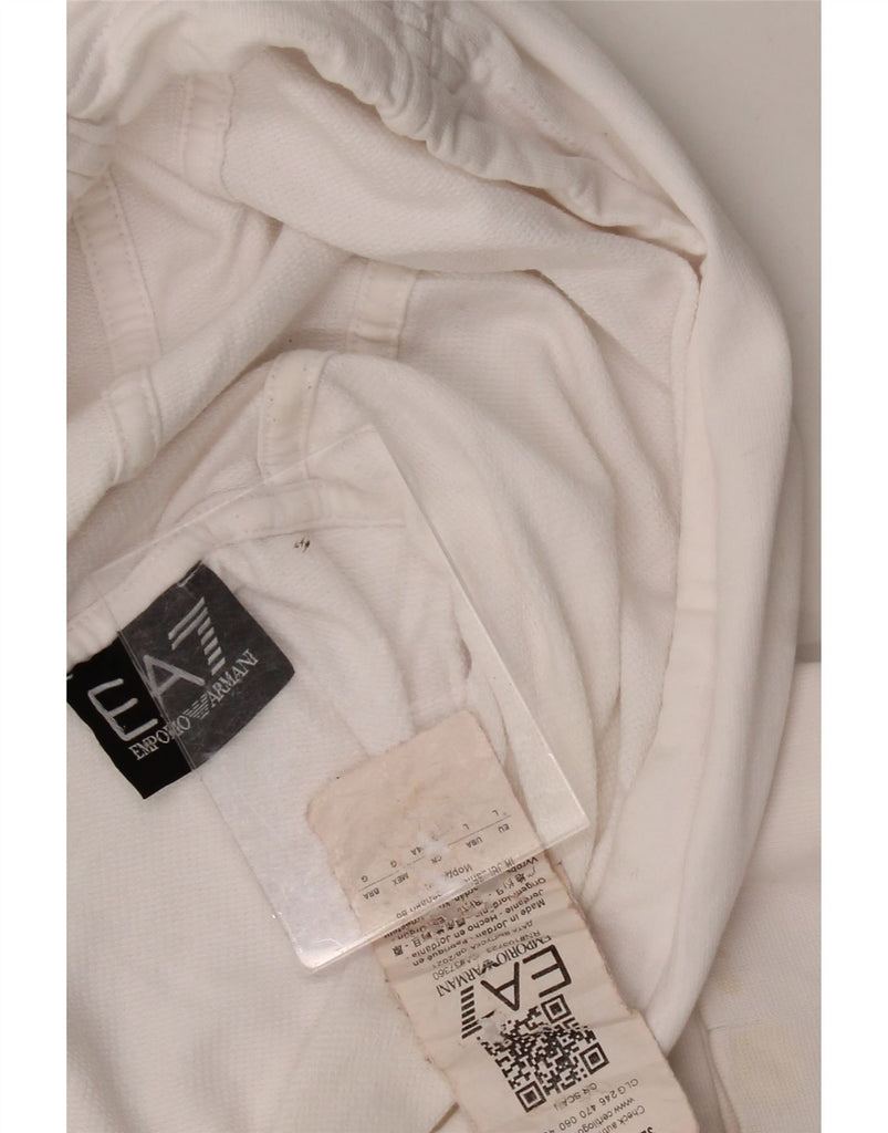 EMPORIO ARMANI Mens Graphic Hoodie Jumper Large White Cotton
