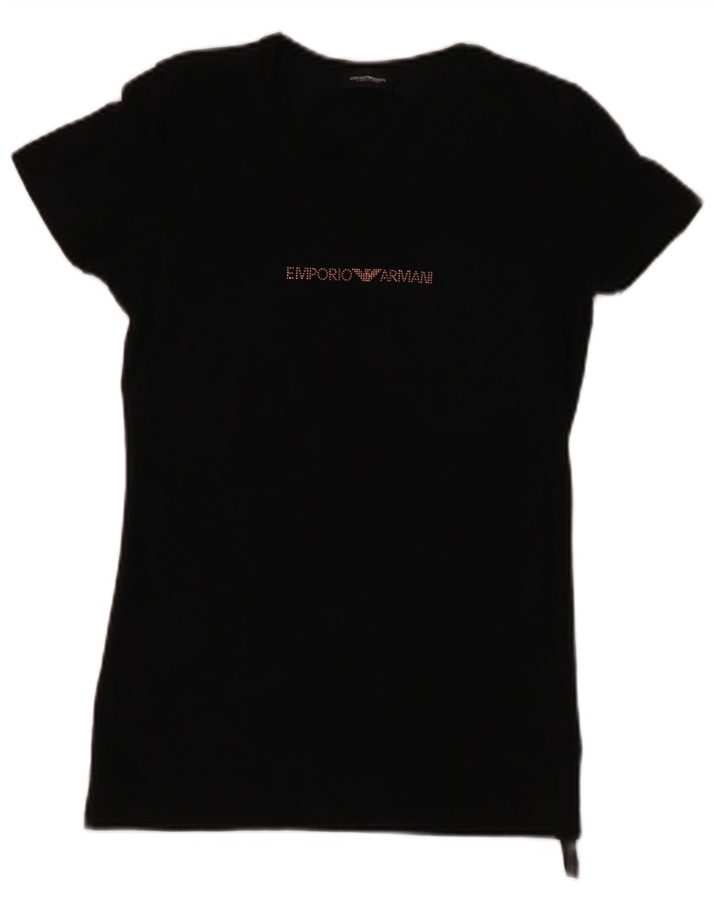 EMPORIO ARMANI Womens Graphic T-Shirt Top UK 8 Small Black Cotton