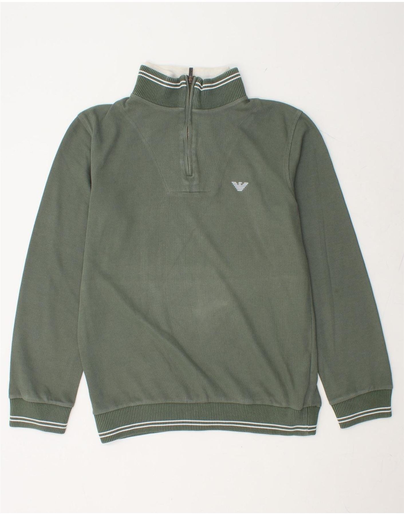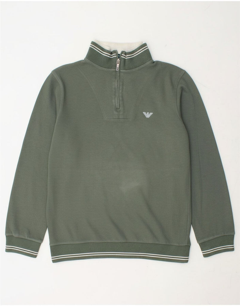 EMPORIO ARMANI Womens Zip Neck Jumper Sweater UK 20 2XL Green Cotton