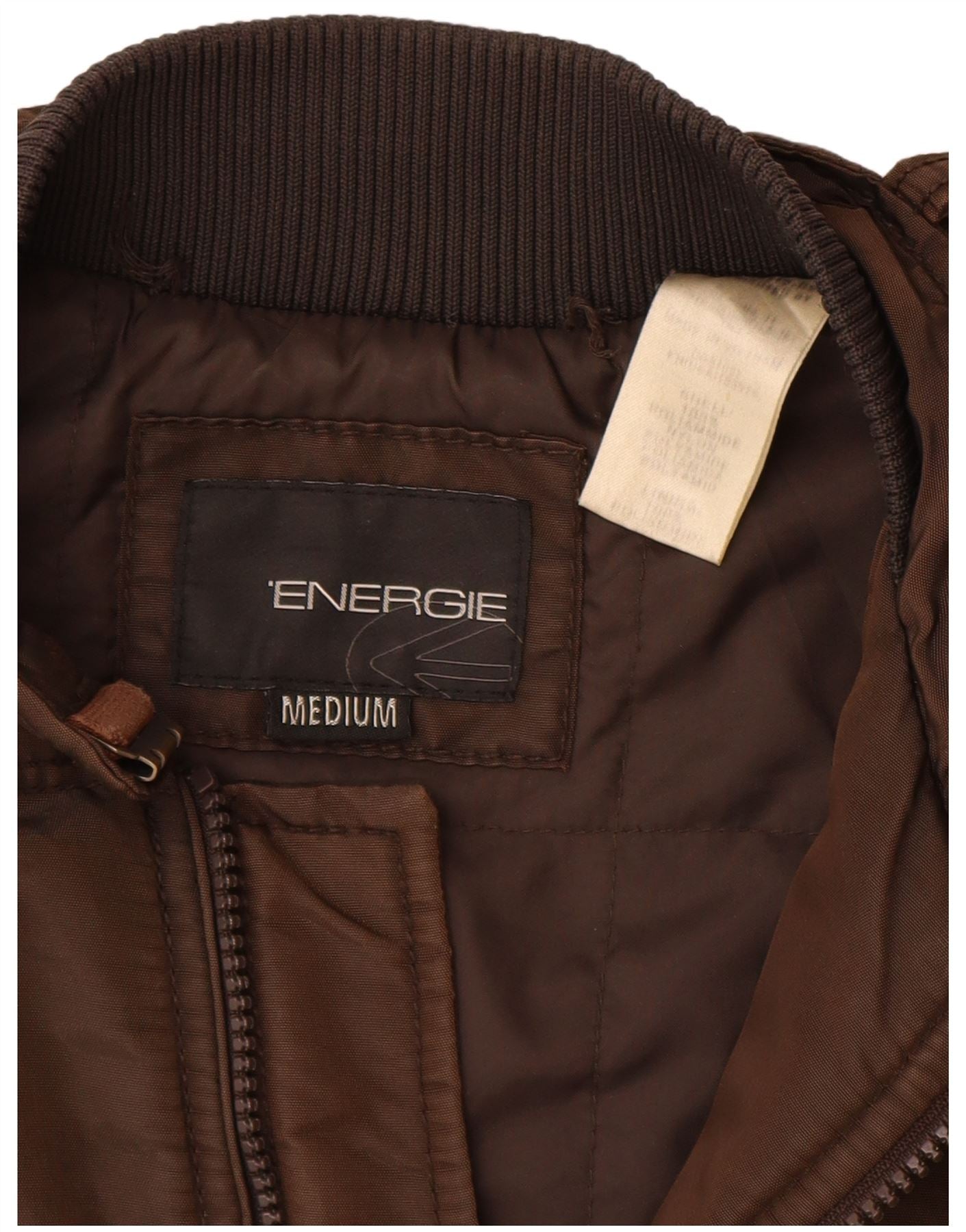 ENERGIE Mens Bomber Jacket UK 38 Medium Brown Polyamide