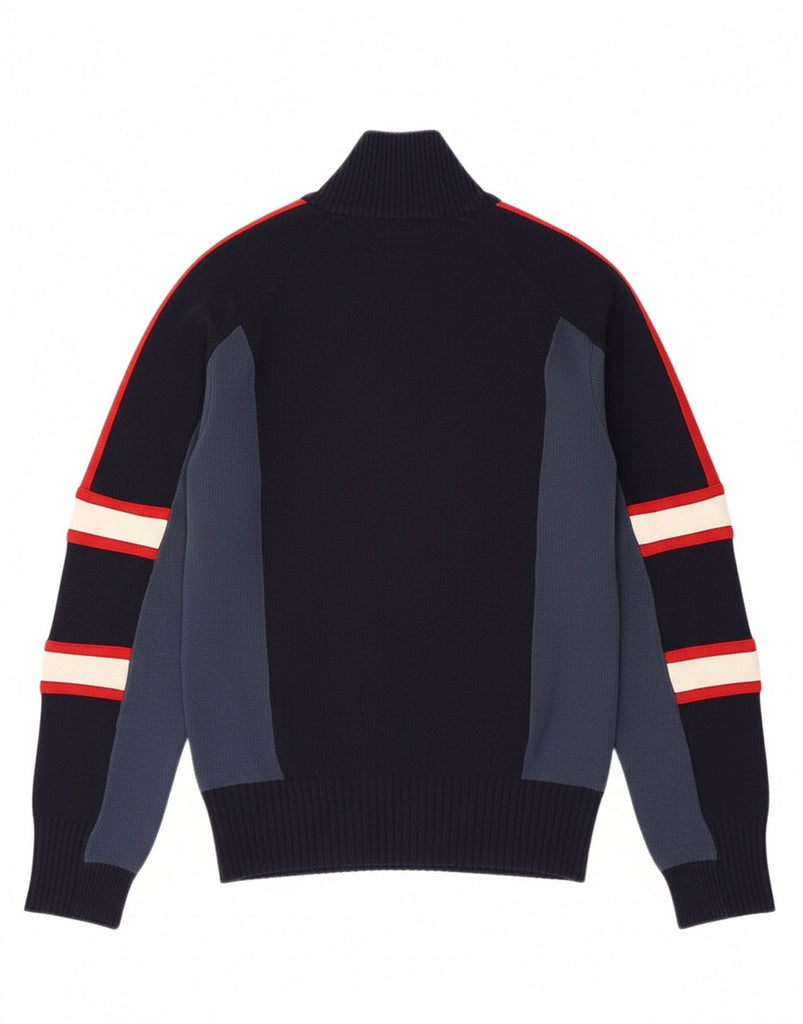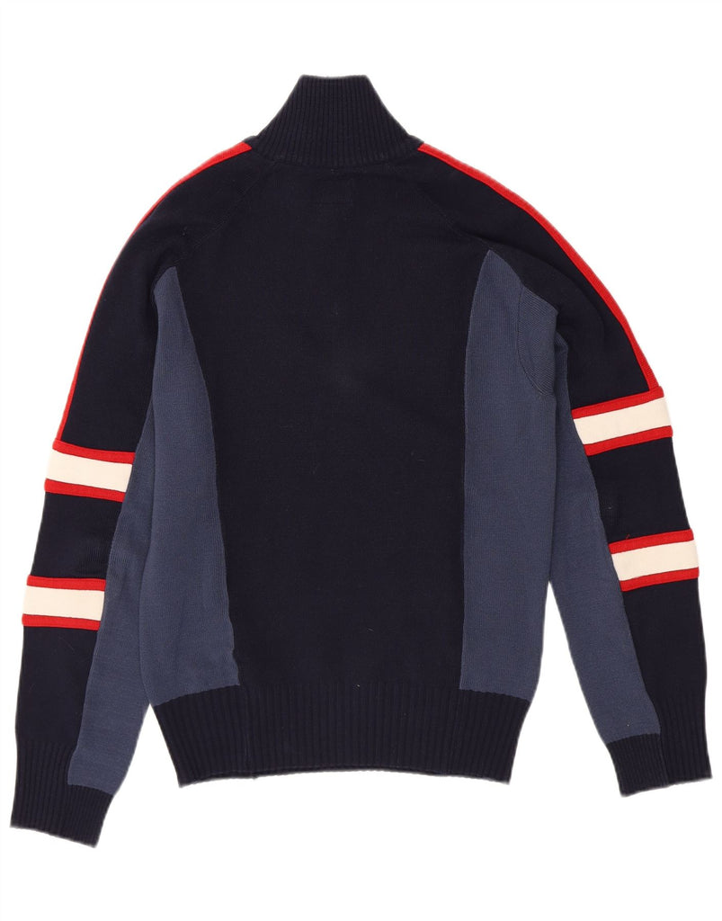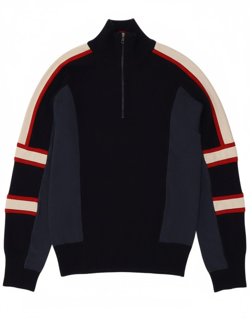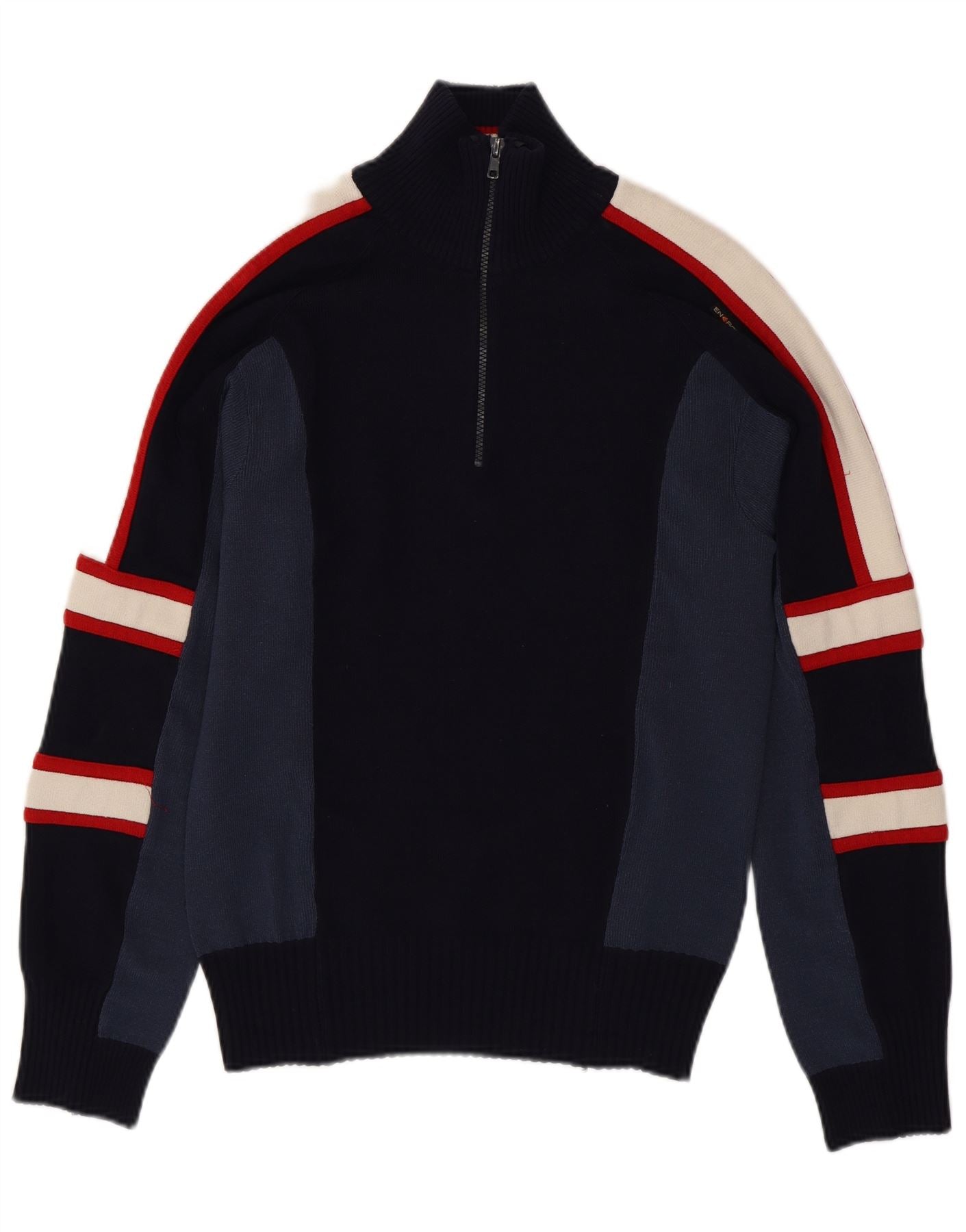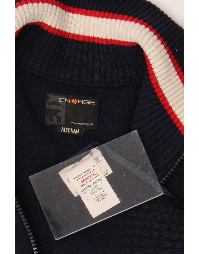 ENERGIE Mens Zip Neck Jumper Sweater Medium Navy Blue Colourblock Acrylic