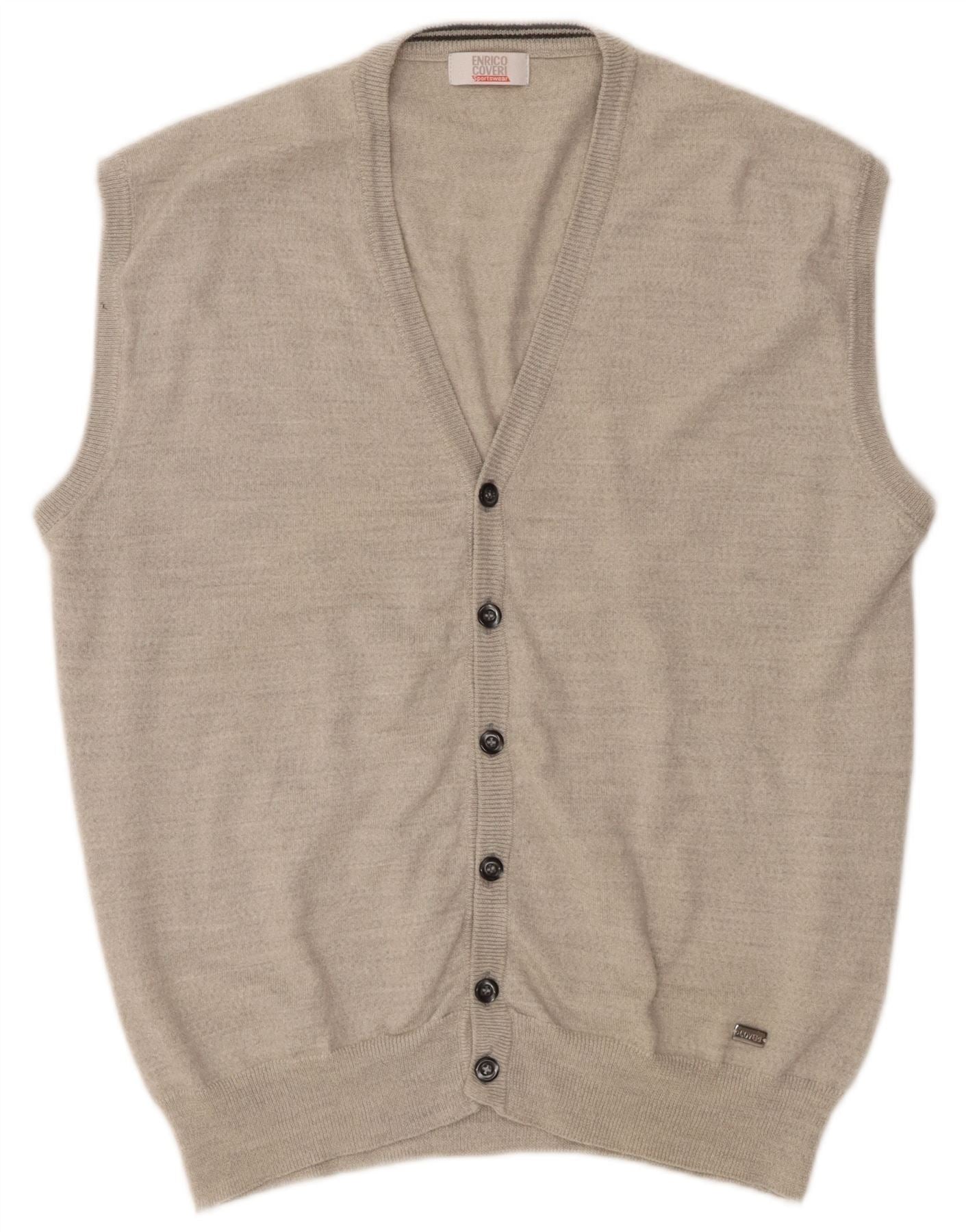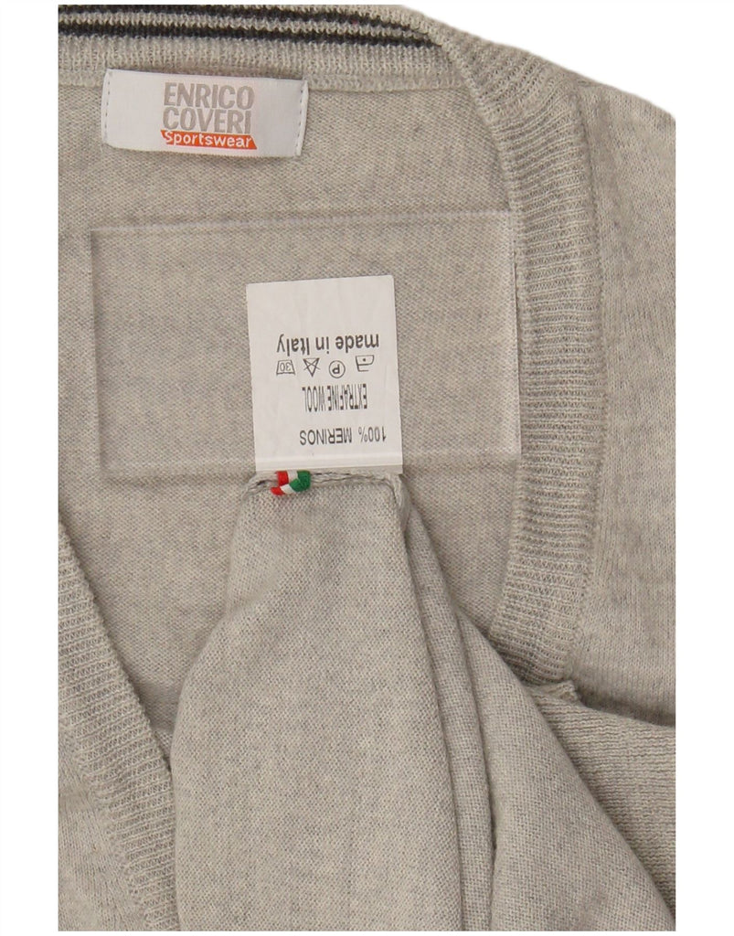 ENRICO COVERI Mens Sleeveless Cardigan Sweater 2XL Grey Merino Wool