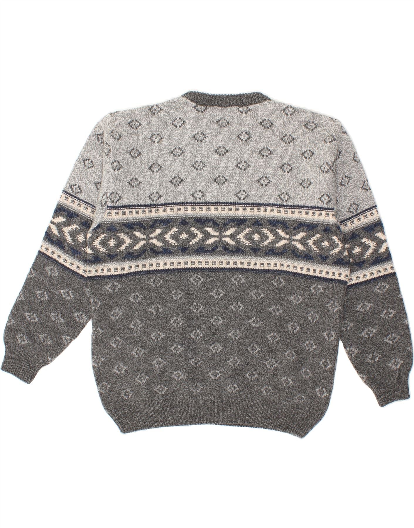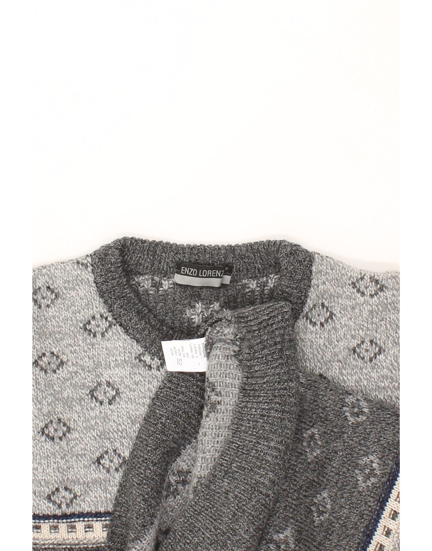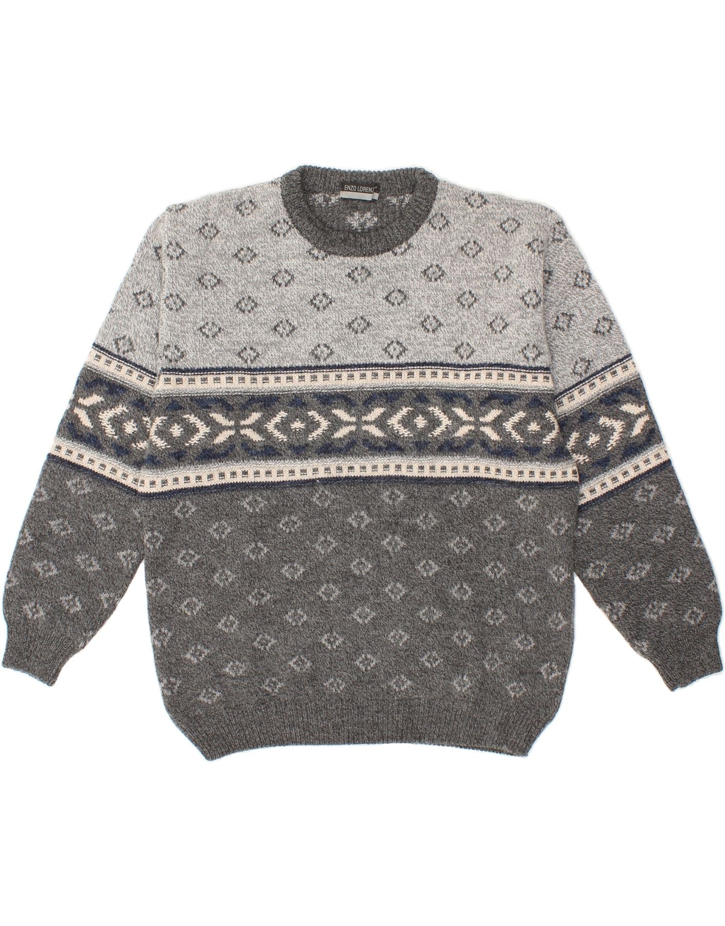 ENZO LORENZO Mens Crew Neck Jumper Sweater IT 52 Large Grey Fair Isle Wool